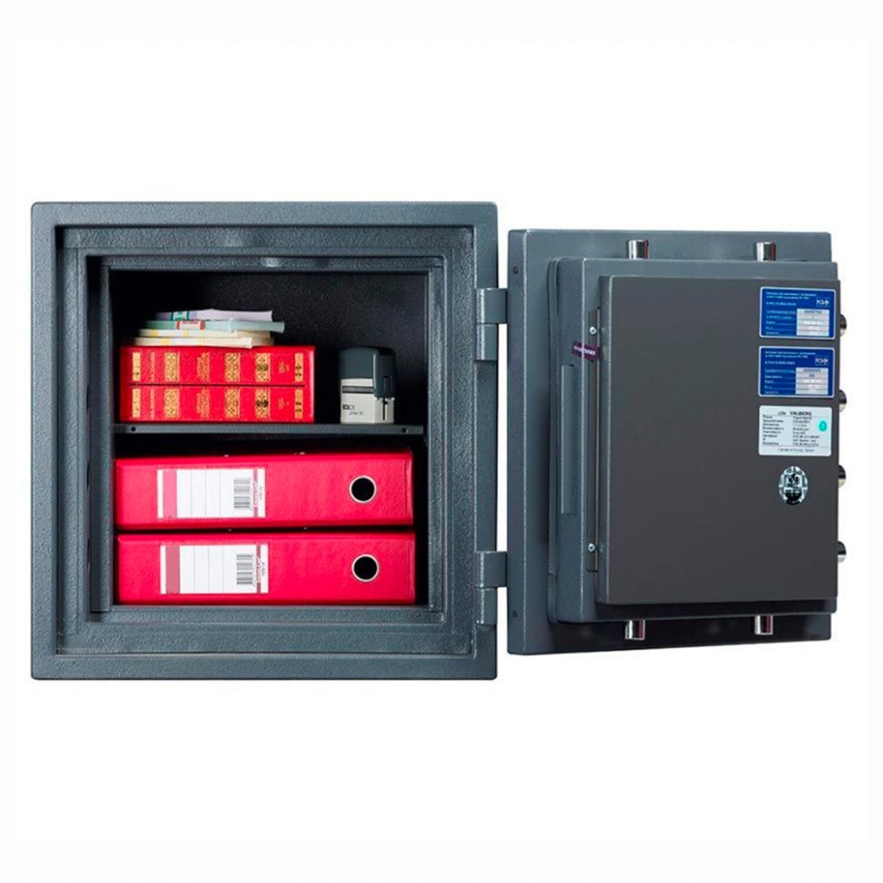 Сейфы "Гарант ЕВРО" — отличный выбор для хранения крупных сумм наличных, деловых бумаг, важных документов дома или в офисе. Сочетание свойств огнеупорности и устойчивости к взлому позволяет защитить ценности одновременно от пожара и кражи. Предназначен для сохранности документов и ценностей при пожаре и взломе. Рекомендованная сумма хранения денег - до 6.5 млн. руб. для физических лиц и до 2 млн. руб. для юридических лиц. Устойчивость к взлому по ГОСТ Р 50862-2017: класс 2 (ГОСТ Р). Огнестойкость: ГОСТ Р 57384-2017: класс 60Б (ГОСТ Р) При заливке двери и корпуса сейфа используется огнестойкий бетон. Сейф имеет 3-стороннюю усиленную ригельную систему запирания с защитой замка и ригелей от высверливания и выбивания. Тепловой замок усиленный с огнестойким уплотнителем. Толщина защитного слоя двери – 33 мм, общая толщина двери - 105 мм, толщина боковых стенок - 77 мм, толщина задней стенки – 51 мм.Комплектуются ключевым замком KABA MAUER Германия.Анкерные болты в комплекте.Чтобы добиться устойчивости к огню и сопротивляемости силовому вскрытию, инженерам приходится задействовать прямо противоположные конструктивные приемы. Поэтому придать огнестойким сейфам свойства взломостойкости крайне сложная технологическая задача и чем выше класс взломостойкости, тем сложнее сочетать его с защитой от огня.Высокие стандарты качества продукции компании "Промет" достигаются за счет использования ультрасовременных технологий с контролем на всех этапах производства, что, в свою очередь, позволило стать безусловным лидером рынка как в области качества, так и цены. Размер внешний (ВхШхГ) - 491х480х460 мм.. Размер внутренний (ВхШхГ) - 349х332х298 мм.. Класс взломостойкости - 2 по ГОСТ Р 50862-2017; класс S2 (РСБ-С).. Класс огнестойкости - 60Б по ГОСТ Р 57384-2017; класс 60Б (РСБ-С).. В сейфе используется запатентованная система армирования огнестойкого бетона.. 3-х сторонняя ригельная система запирания с никелированными ригелями.. Защита замка и ригелей от высверливания и выбивания.. Система блокировки ригельного механизма при выбивании замка.. Общая толщина двери - 105 мм; толщина боковых стенок - 77 мм.. Ключевой замок KABA MAUER (Германия).. Наличие анкерного крепления к полу, анкерный болт в комплекте.. Цвет - графит структурированный.. Гарантия 5 лет (гарантия на электронный замок - 1 год). Бренд - VALBERG. Производитель - Россия. Артикул - S10299210014. Штрихкод - 4606927008394