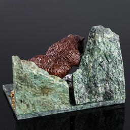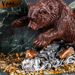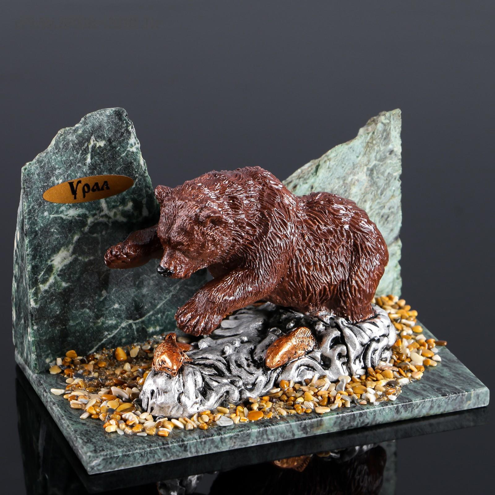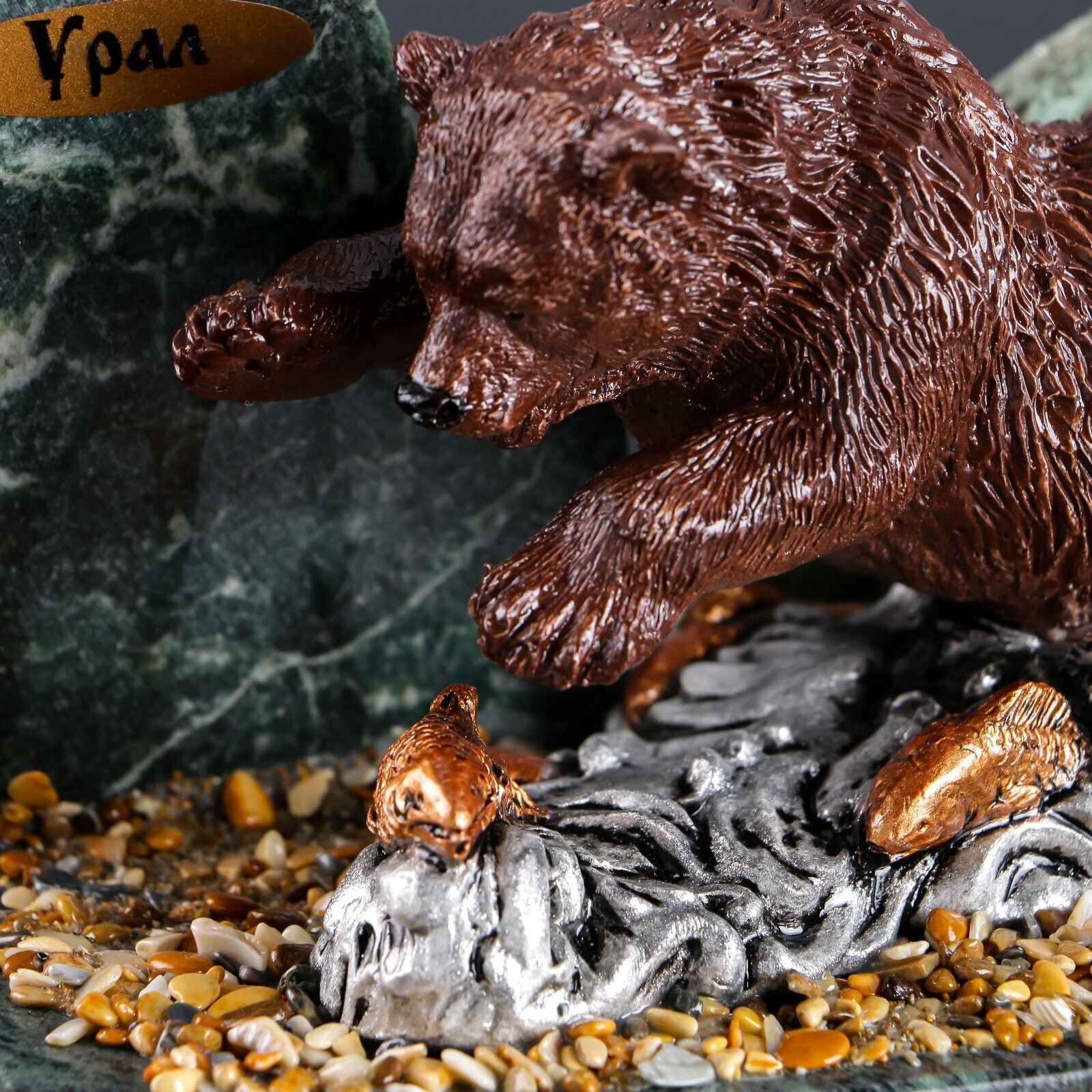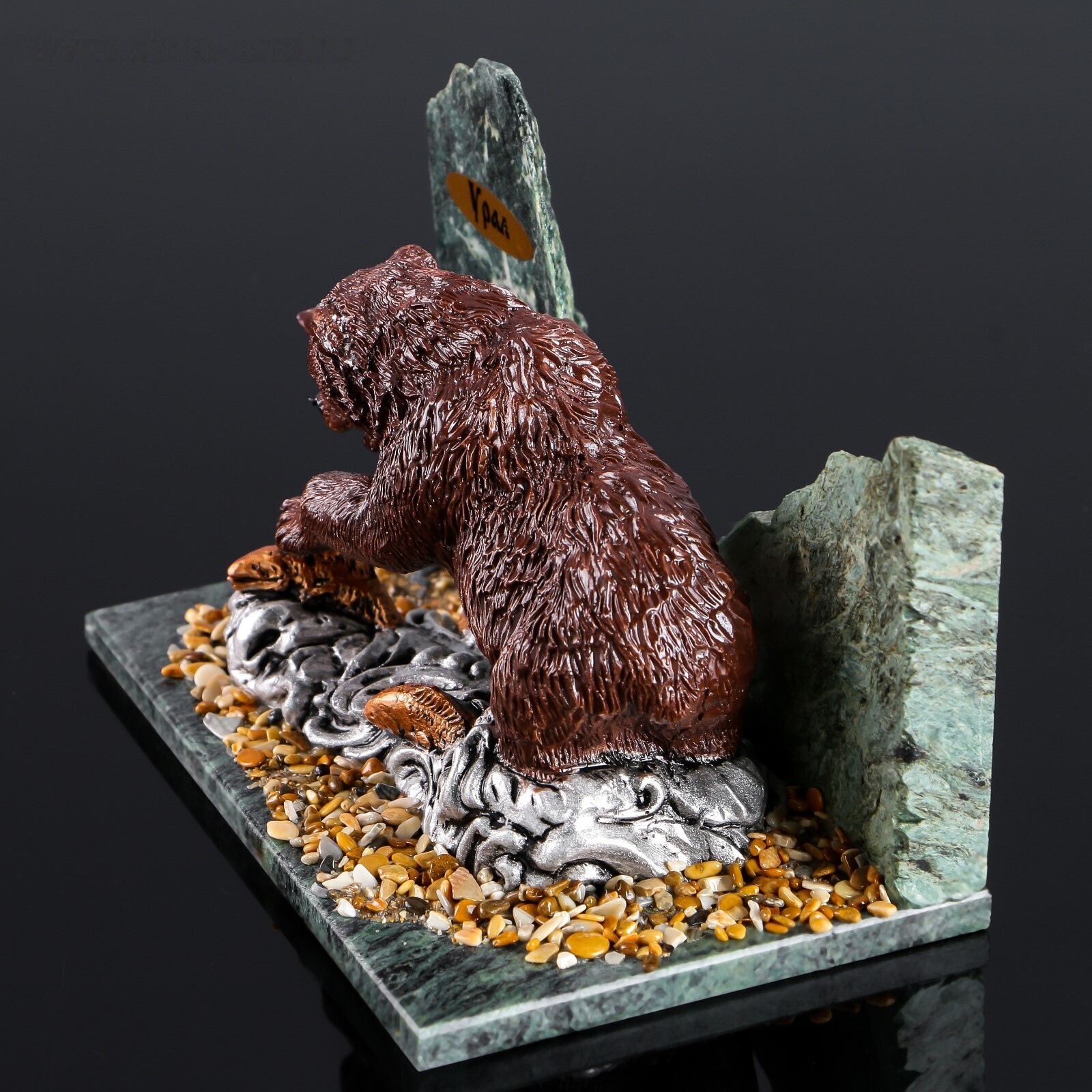 Сувенир "Медведь на рыбалке", 10х15х10 см, змеевик, гипс, минералы