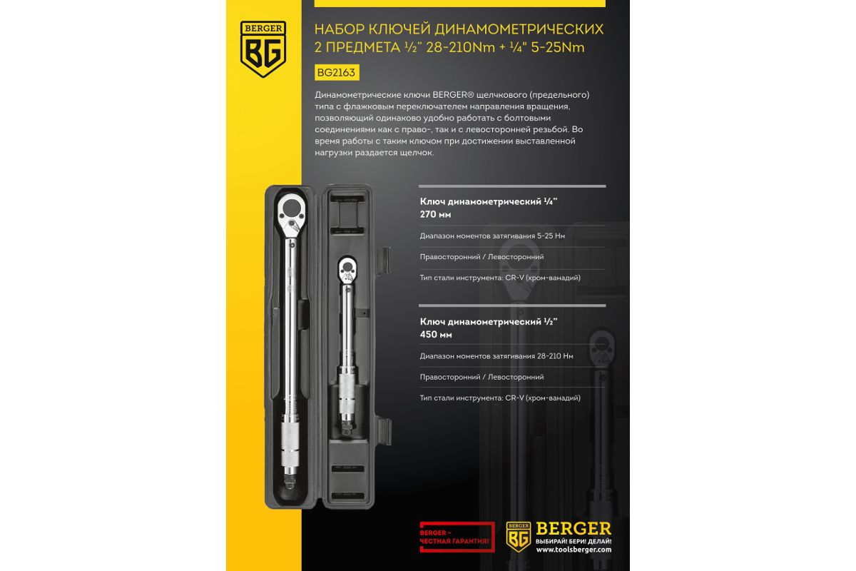 Набор ключей динамометрических BERGER BG2163 2 предмета предельный, 5-210 Нм, длина 270 мм