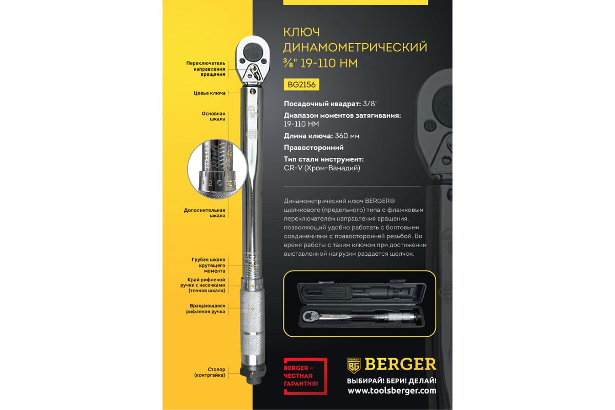 Ключ BERGER BG2156 предельный, 19-110 Нм, 3/8, длина 360 мм