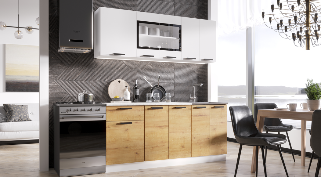 Готовая кухня Хозяюшка 1,8м Дуб вотан/Белый гладкий