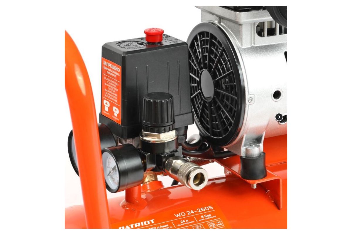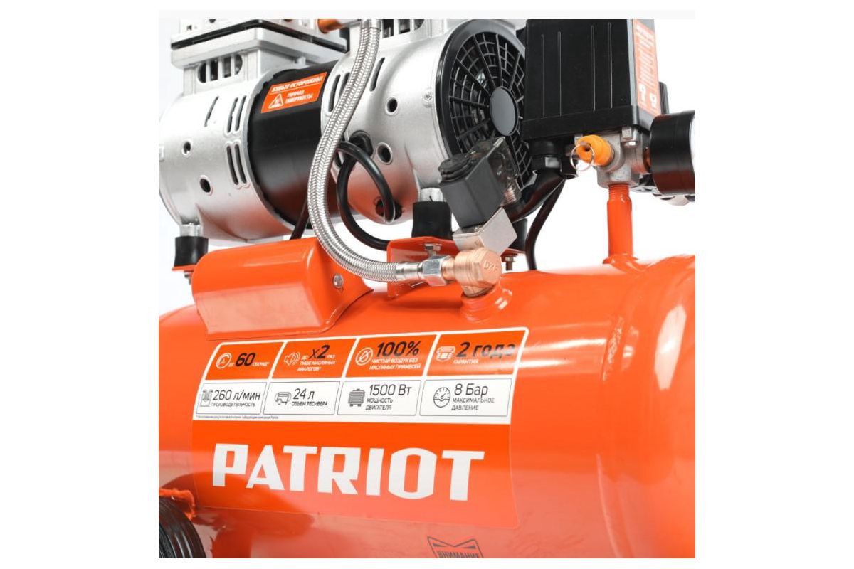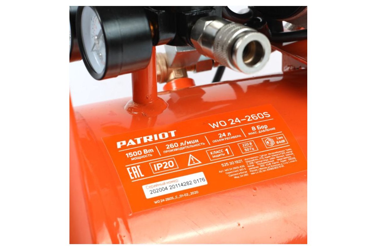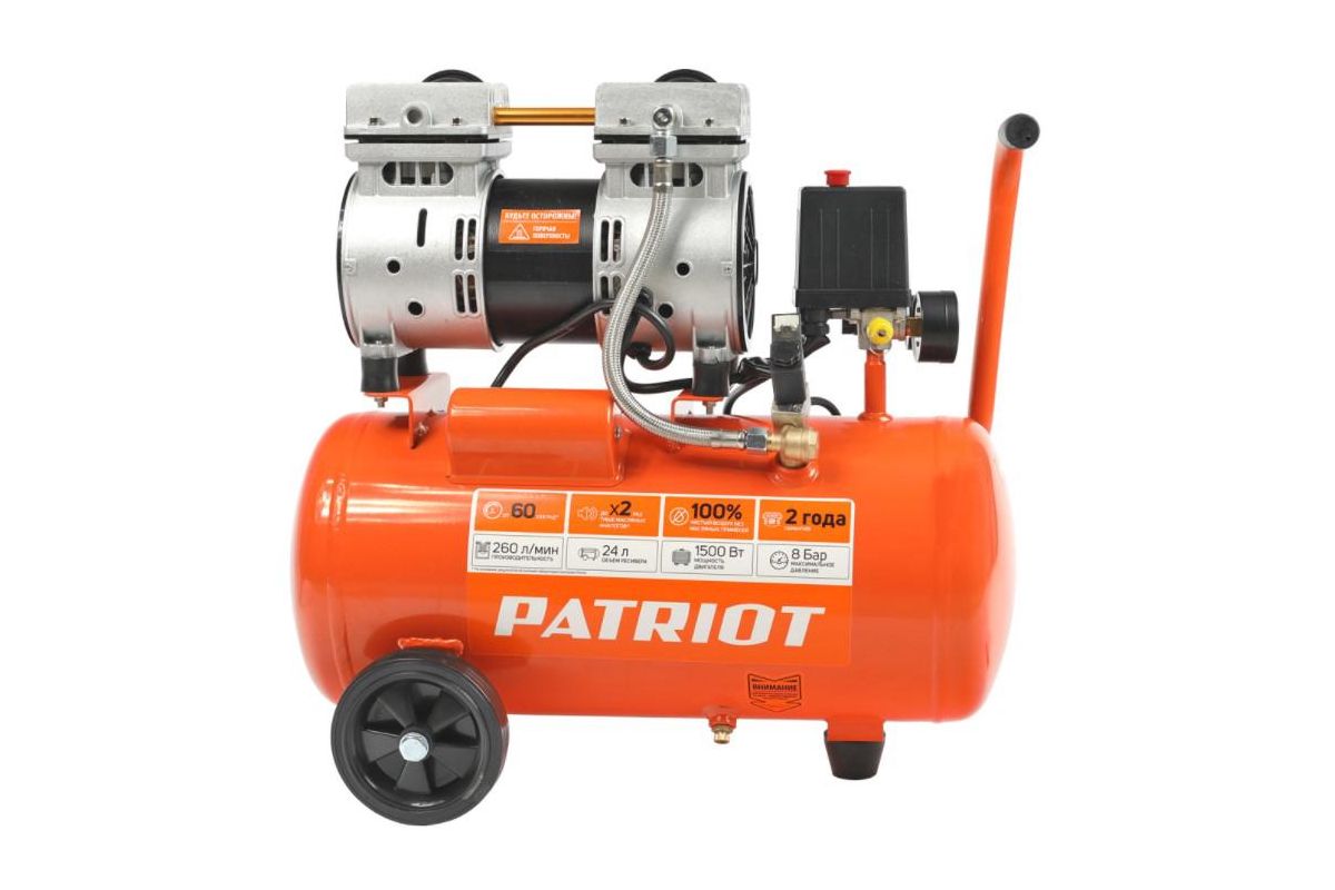 Компрессор PATRIOT WO 24-260S поршн.безмасляный, 260л/мин, 8бар, 1500Вт, 24л, быстросъемный 1/4''