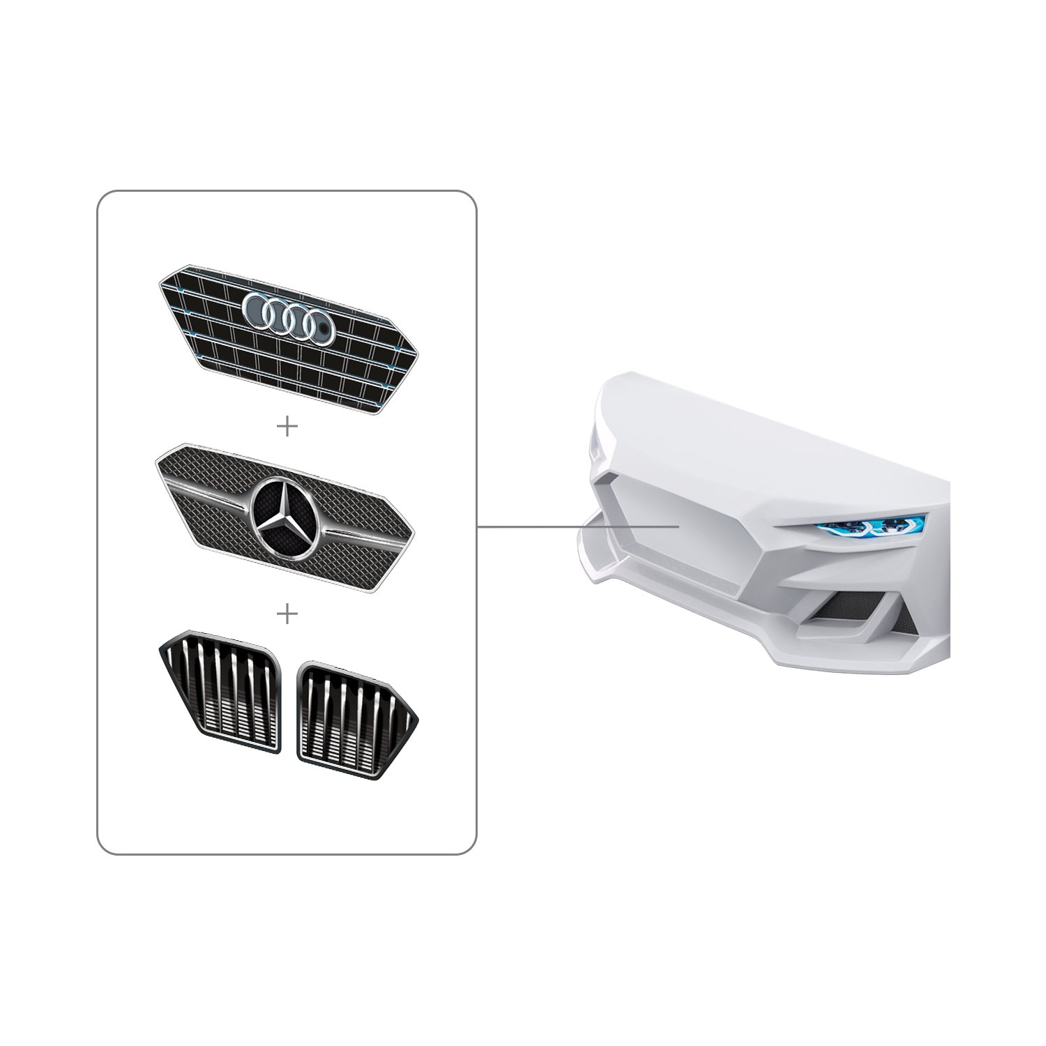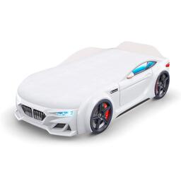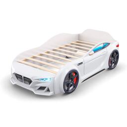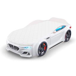 Кровать машина детская ROMACK Baby белая 150*70 см с матрасом подсветкой фар и чехлом 1000_44