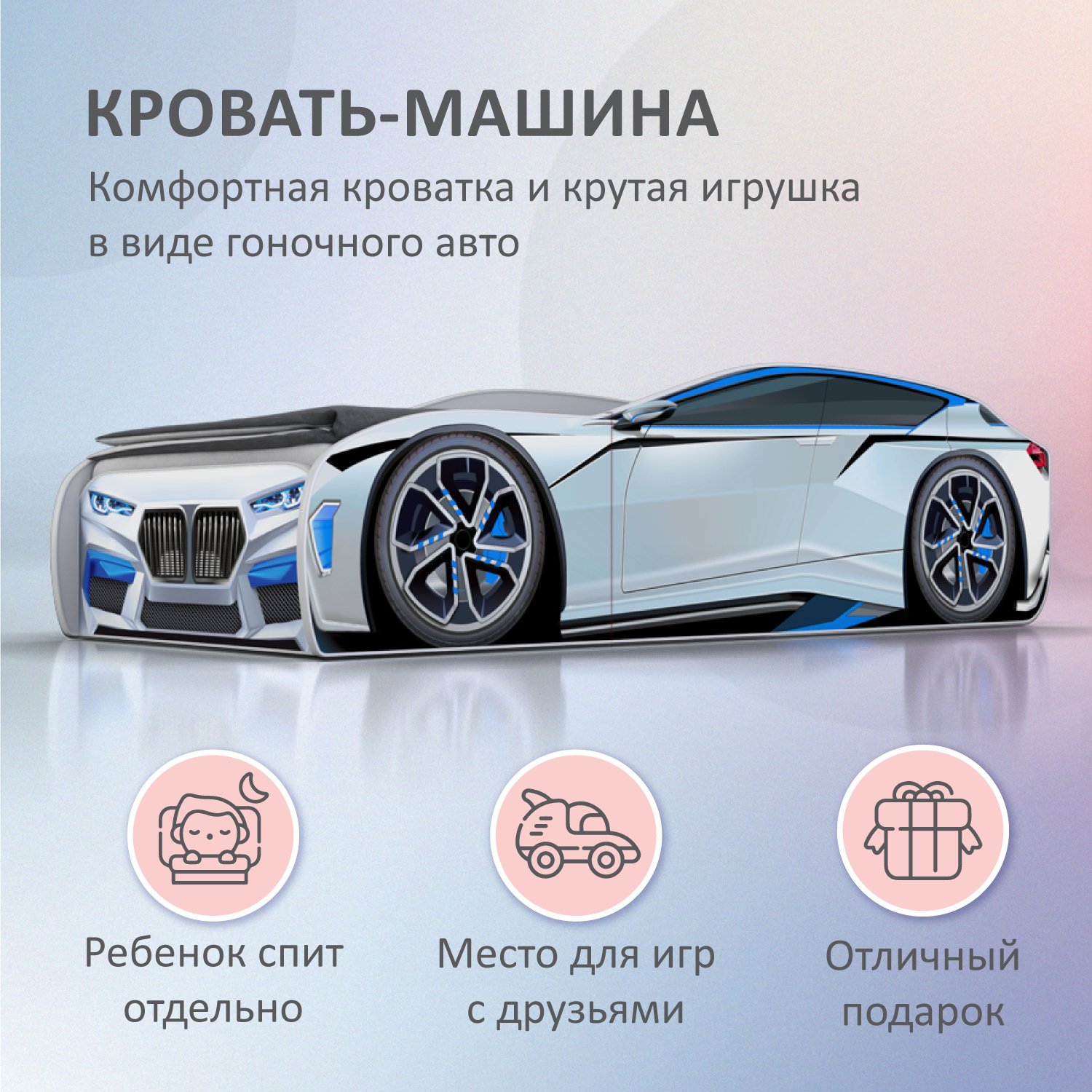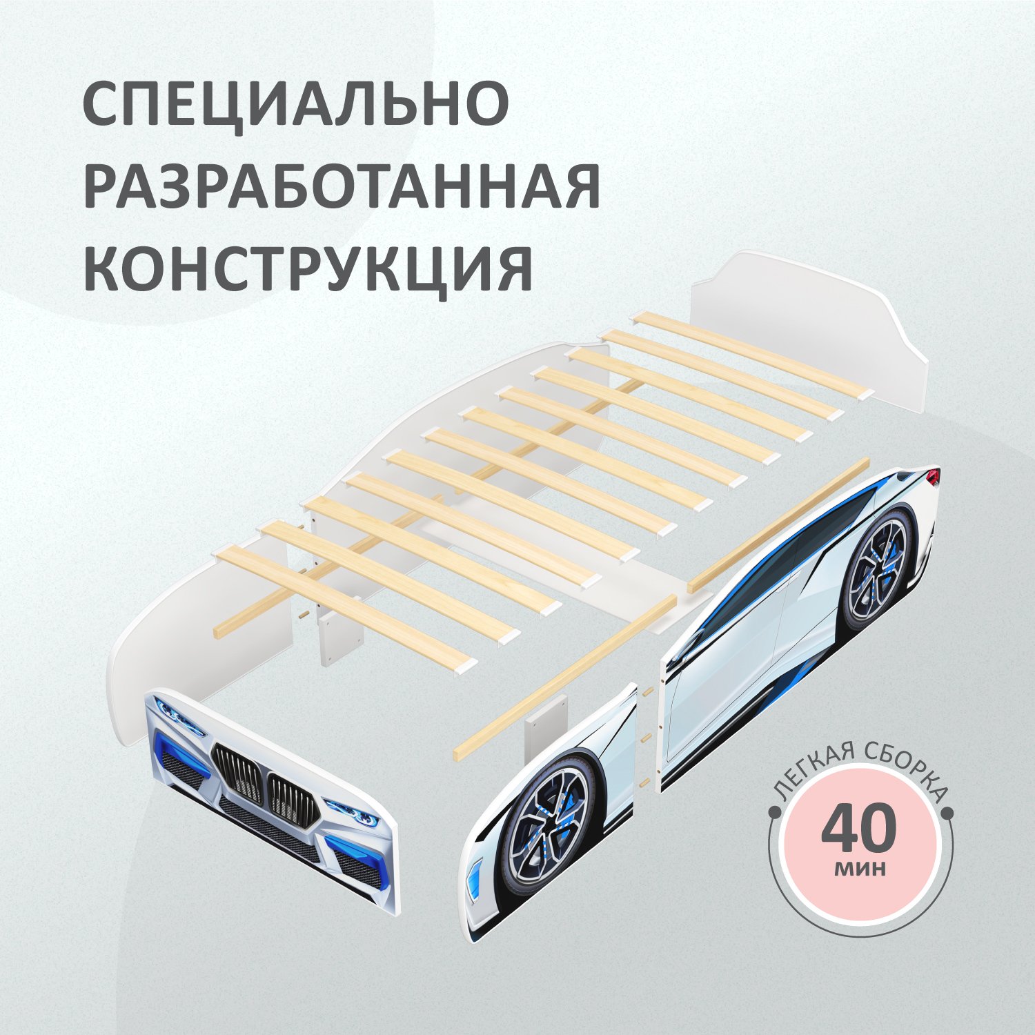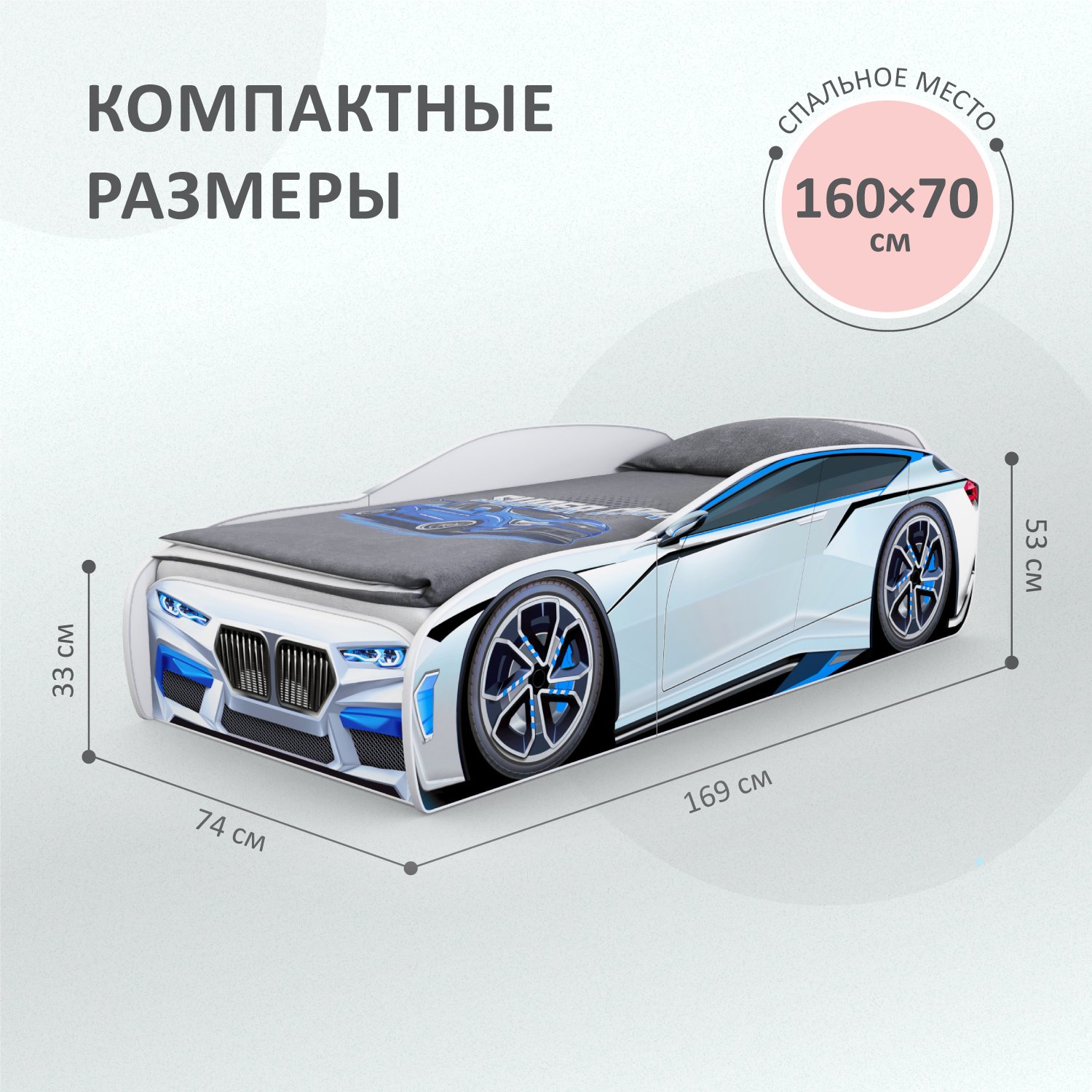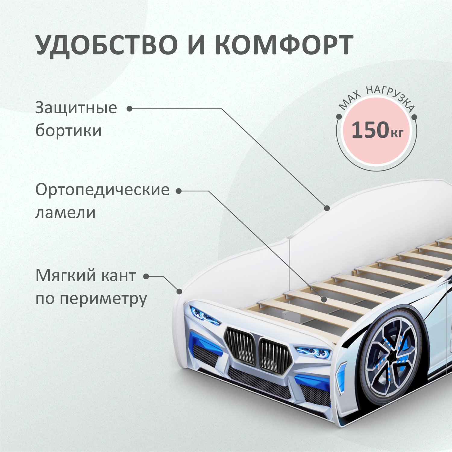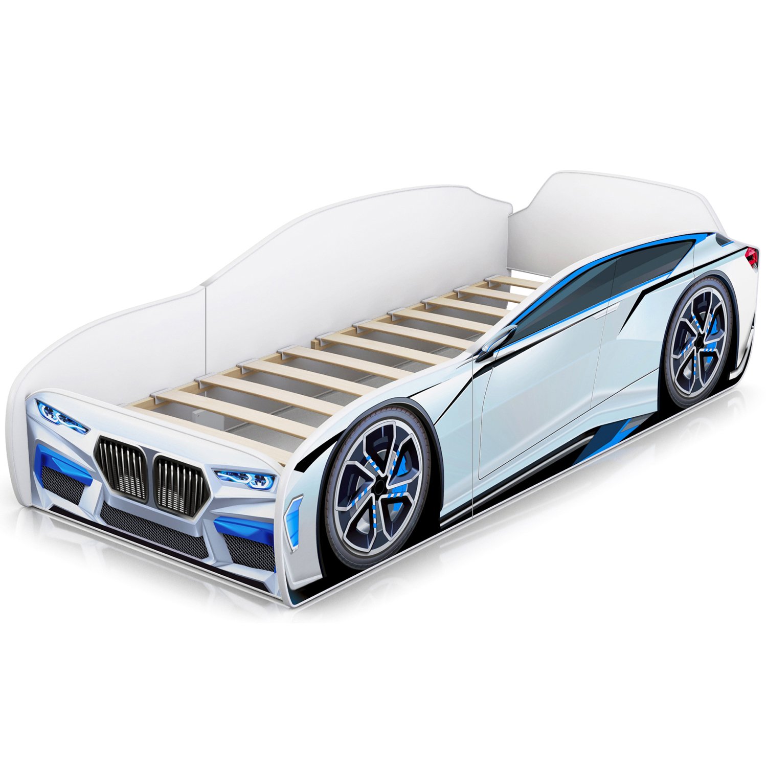 Кровать машина детская ROMACK Kiddy белая 160*70 см 500_403