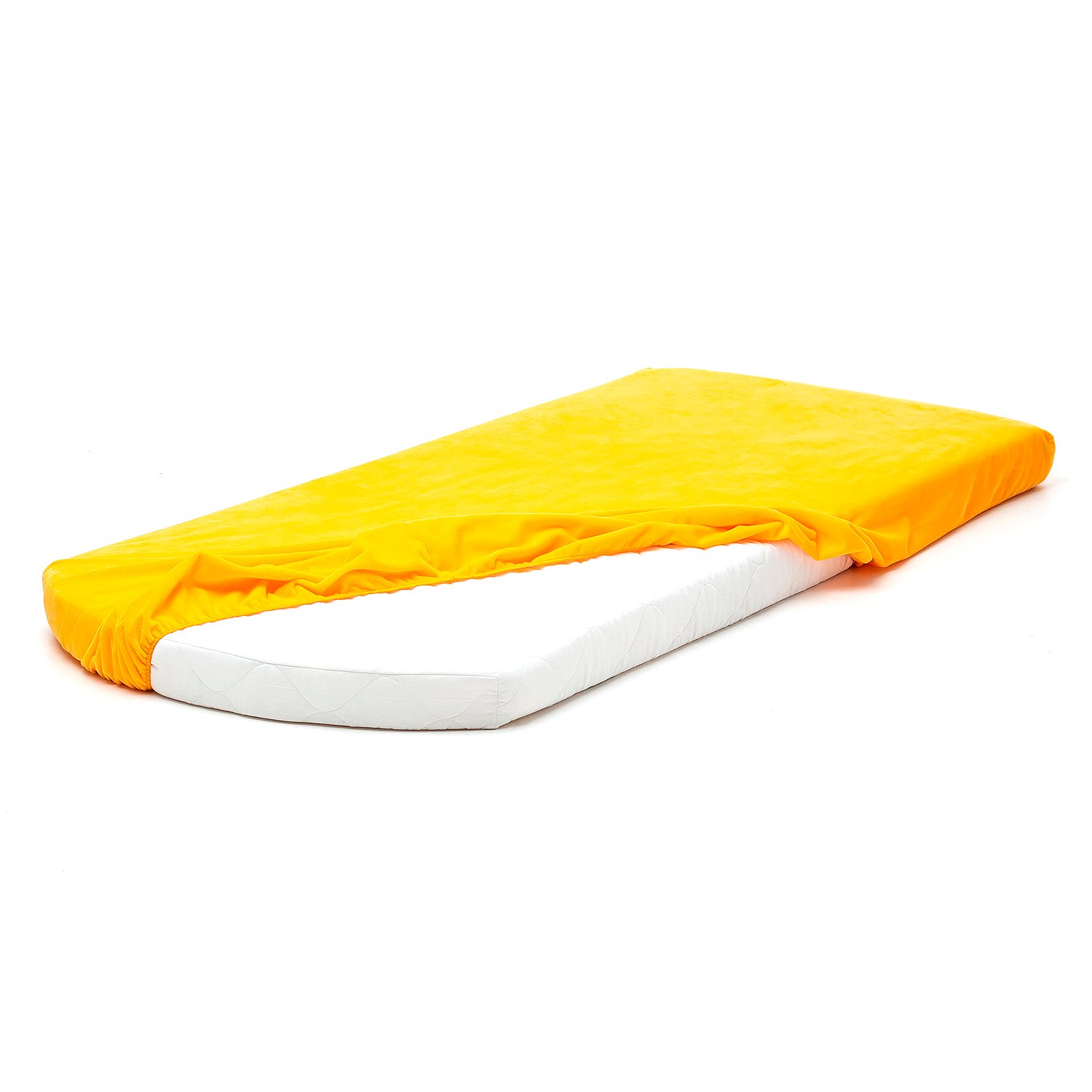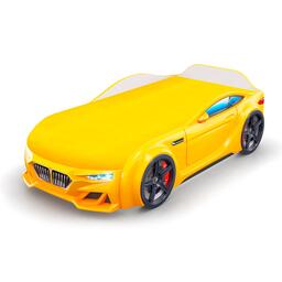 Кровать машина детская ROMACK Baby желтая 150*70 см с матрасом подсветкой фар и чехлом 1000_68