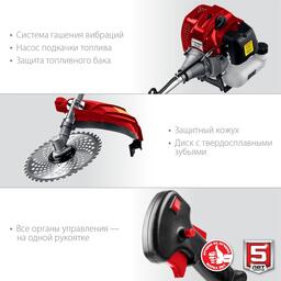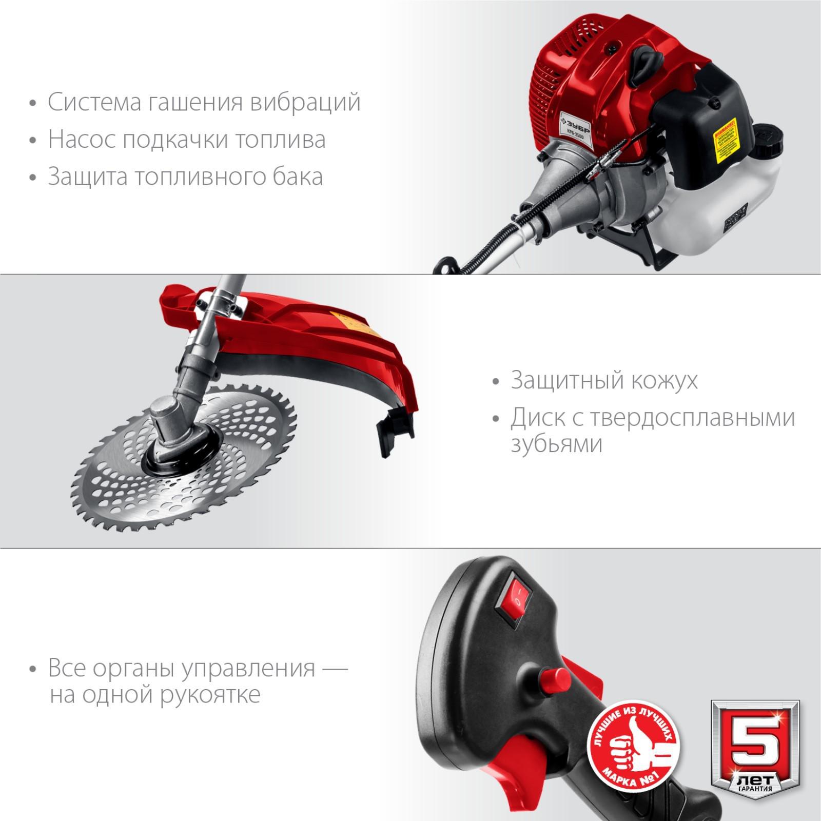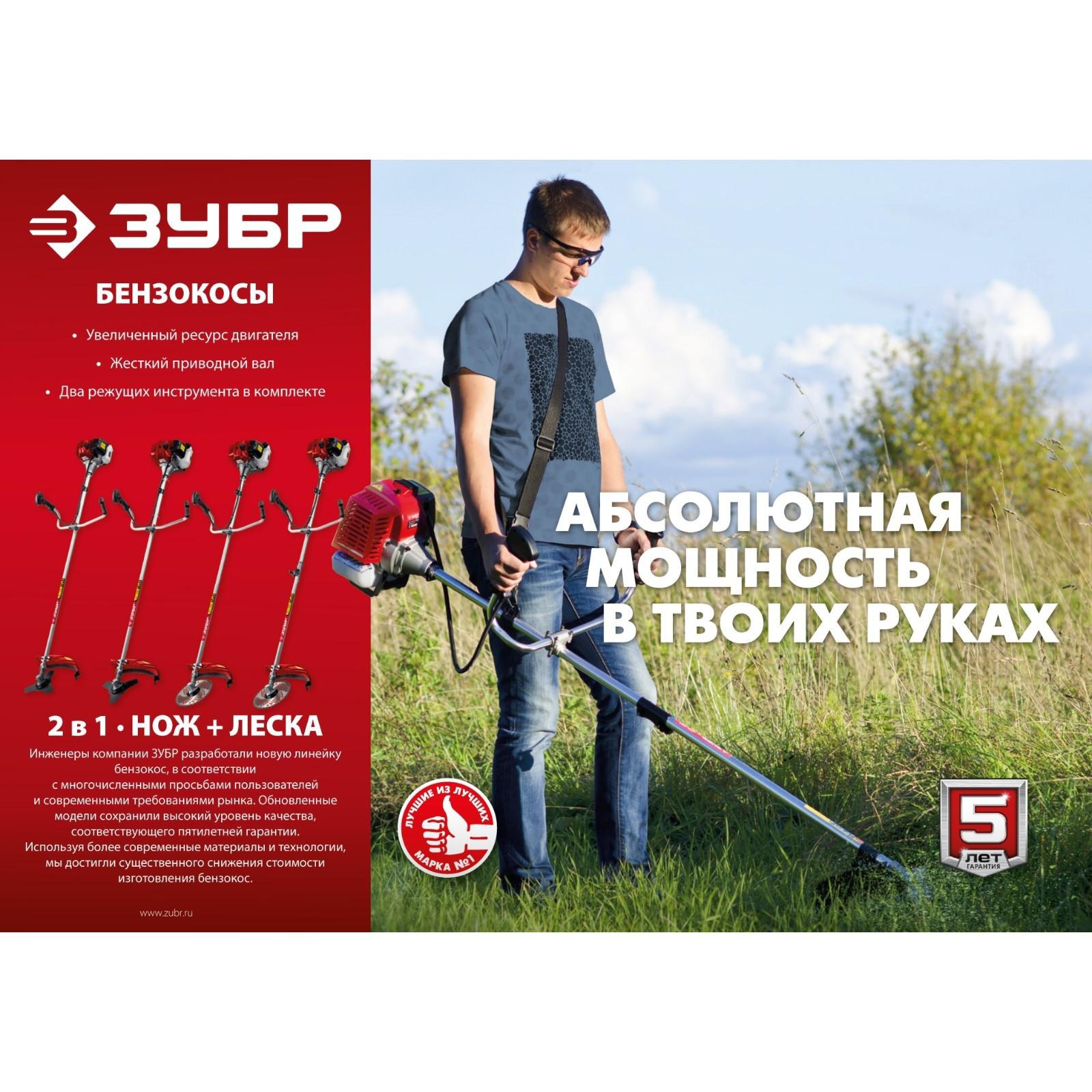 Бензотриммер ЗУБР КРБ-2500, 2500 Вт, 9000 об/мин, скос 47/25.5 см, леска 2.4 мм, М10х1.25 LH 91106
