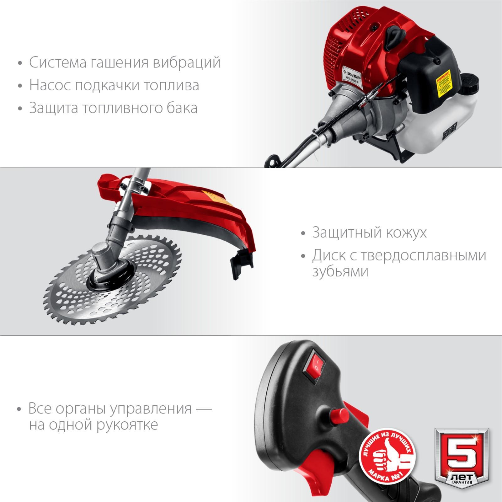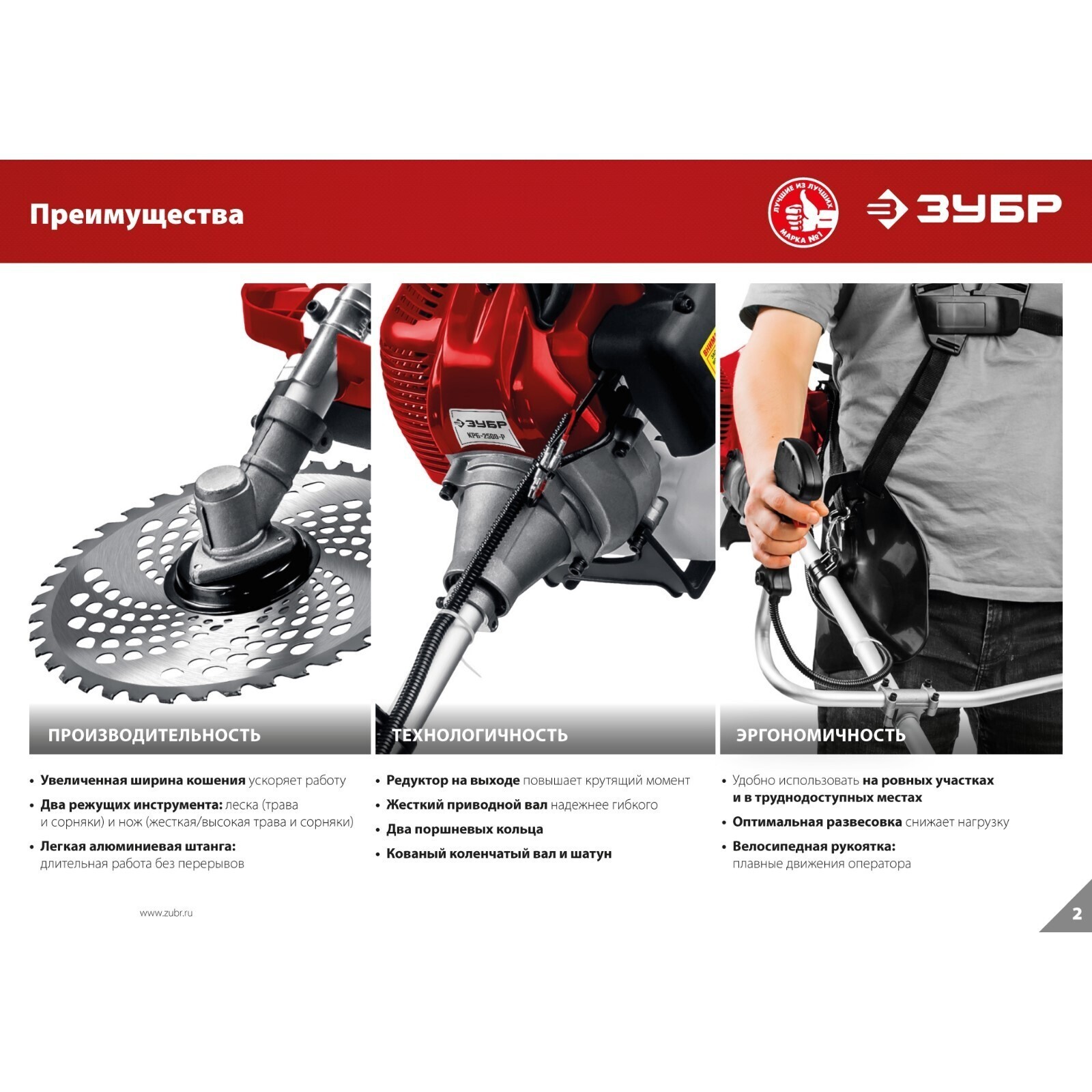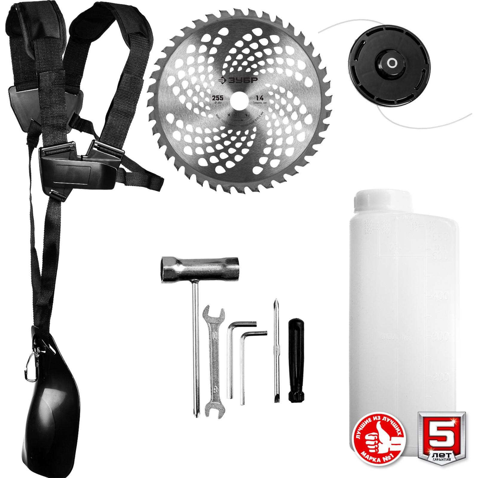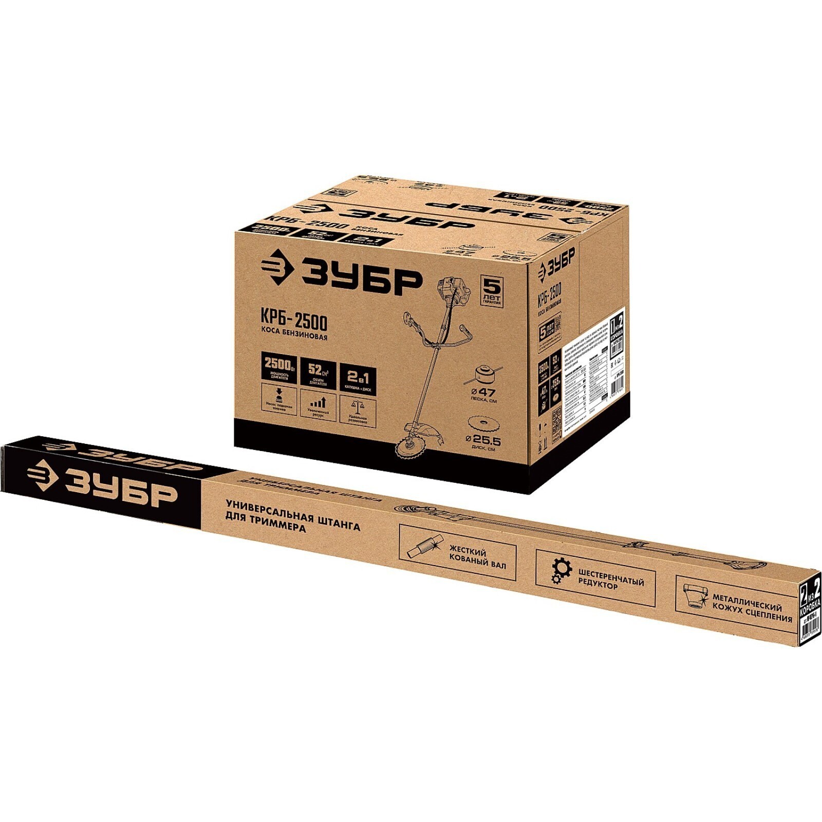 Бензотриммер ЗУБР КРБ-2500, 2500 Вт, 9000 об/мин, скос 47/25.5 см, леска 2.4 мм, М10х1.25 LH 91106