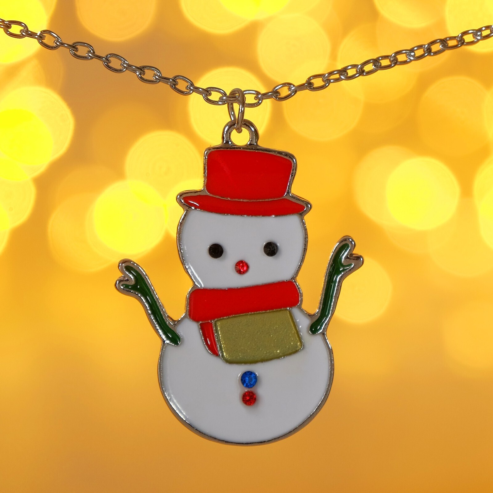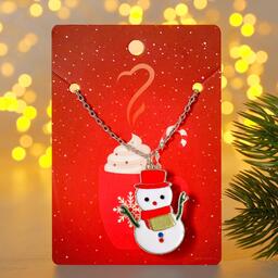 Кулон "Новогодний" снеговик в шляпе, цветной в серебре, 46 см