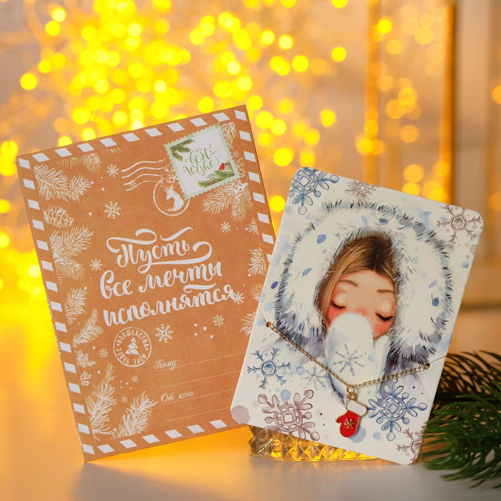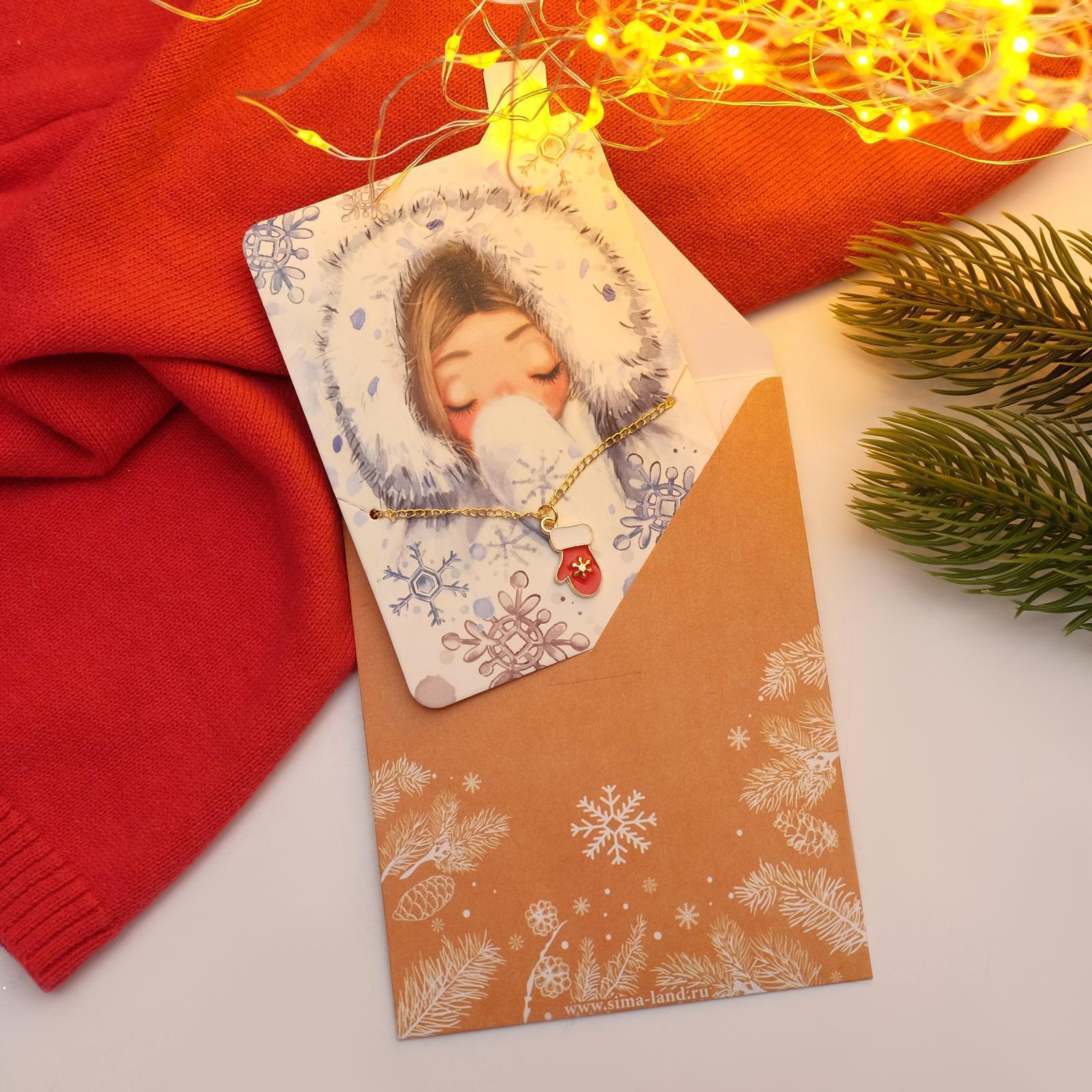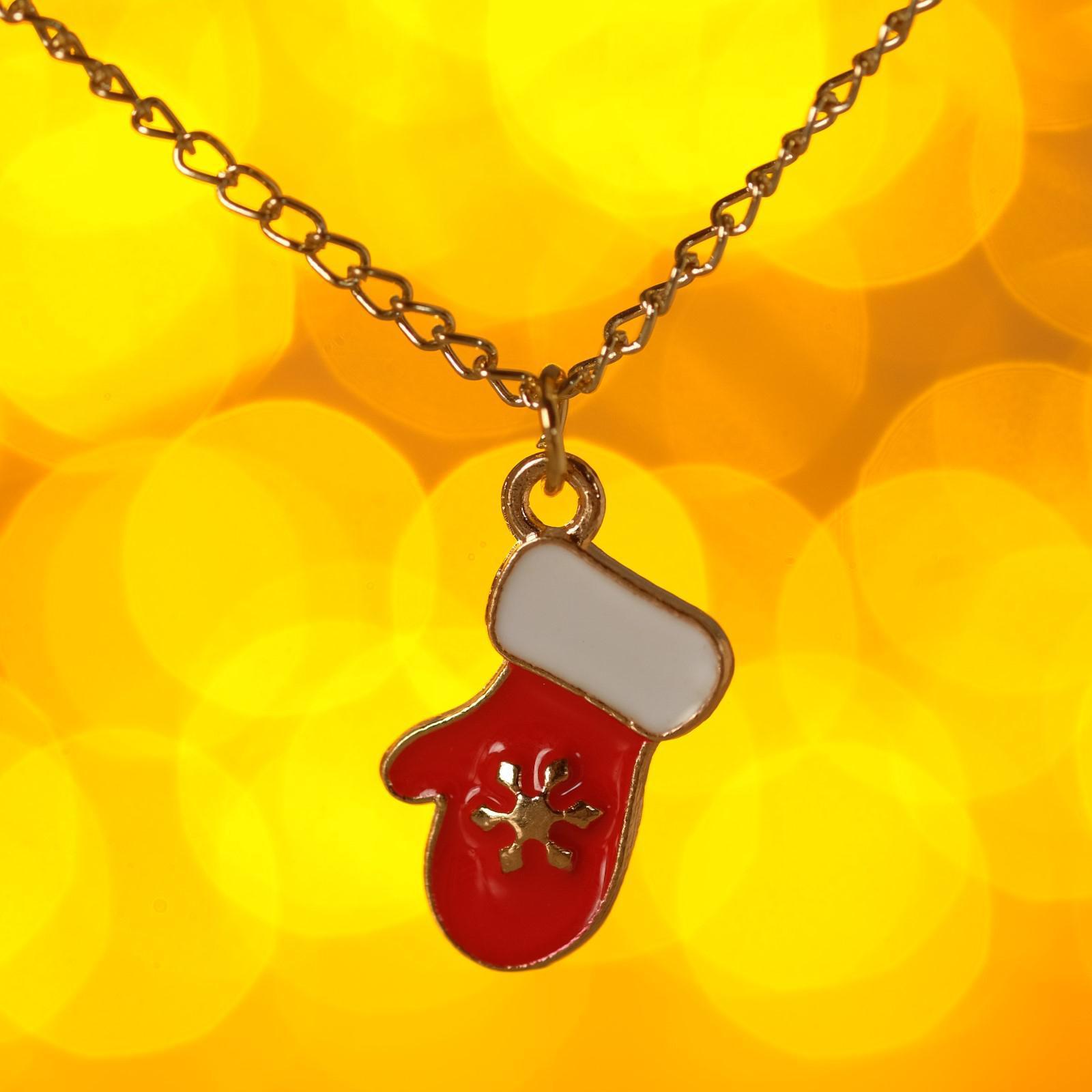 Кулон "Варежка", цвет красно-белый в золоте, 42 см