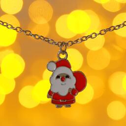 Кулон "Дед мороз с мешком", цвет красно-белый в серебре, 46 см