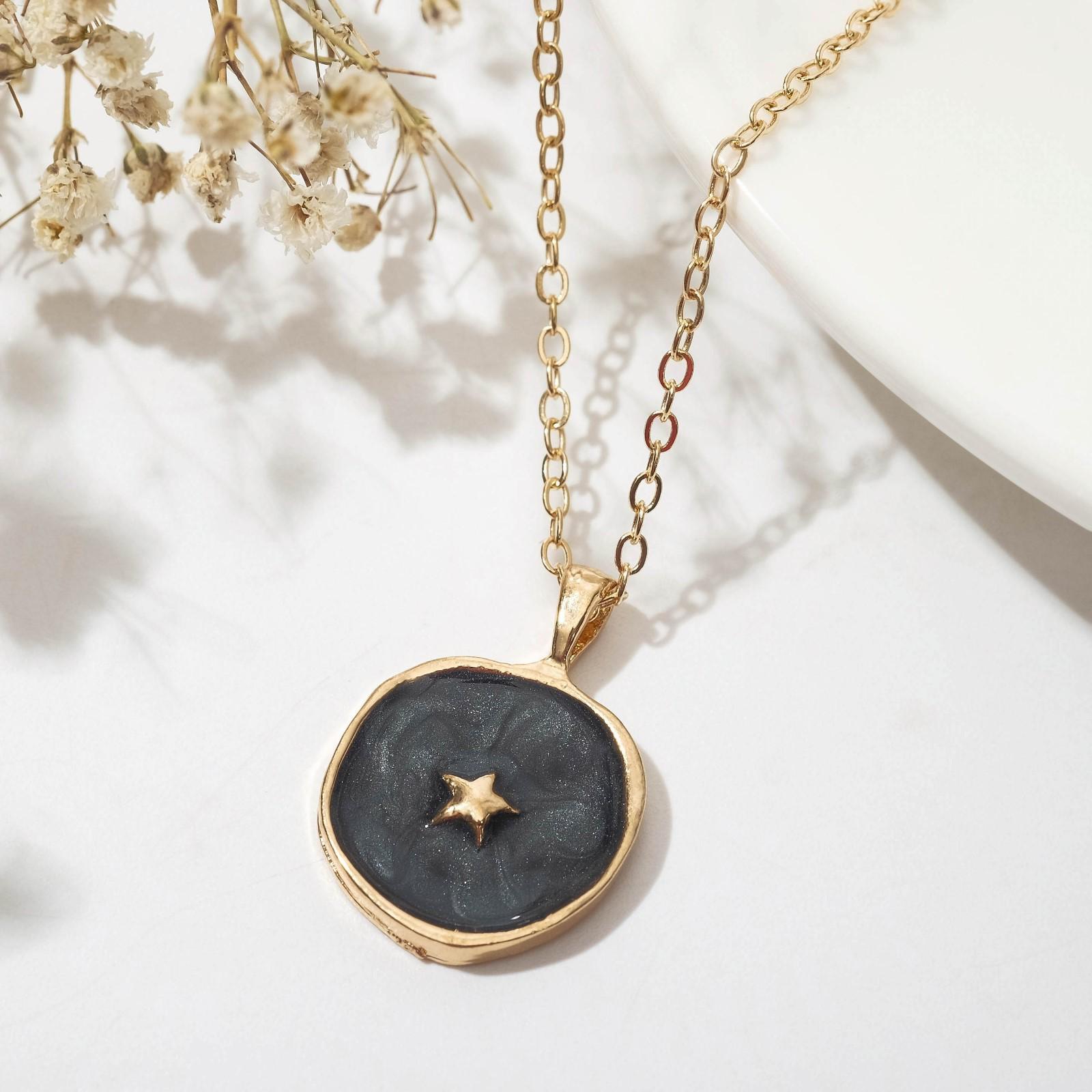 Кулон "Круг" звезда, цвет чёрный в золоте, 40 см