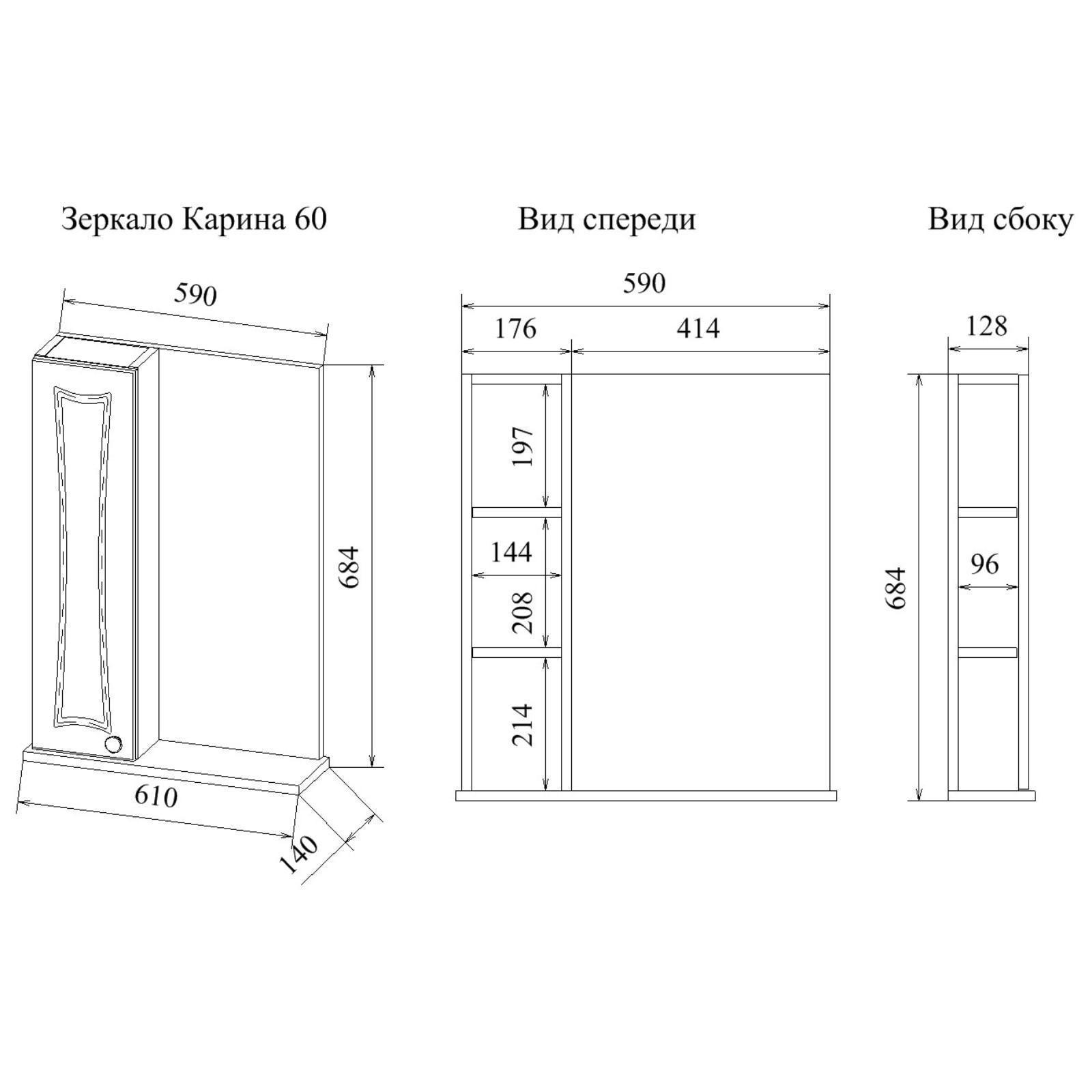 Шкаф-зеркало Карина 60, левый 14 см х 61 см х 70 см