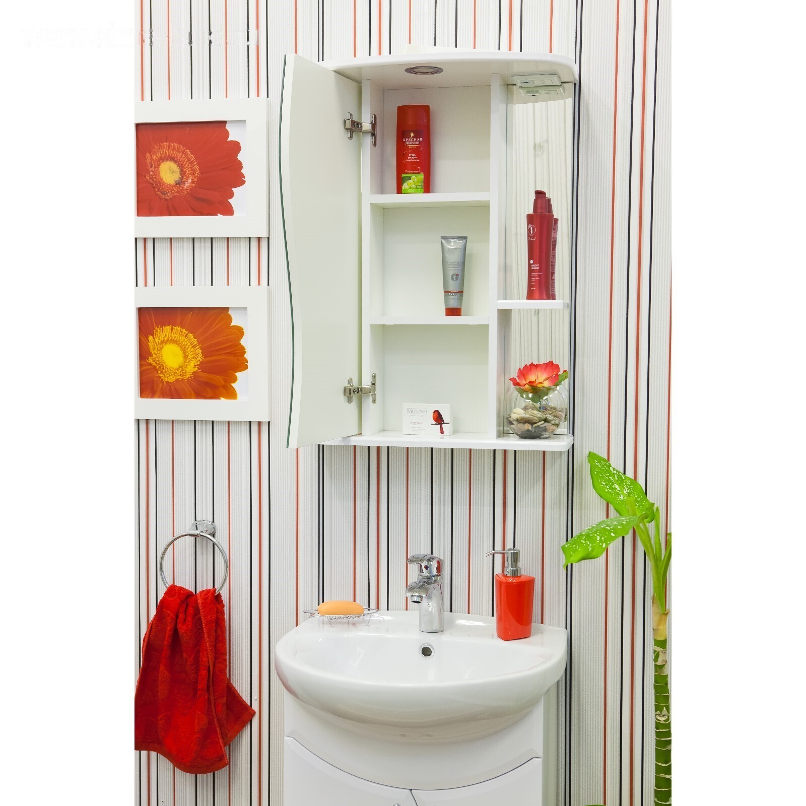 Шкаф-зеркало Лина 55 белый глянец, левый 26,5 см х 55 см х 73 см