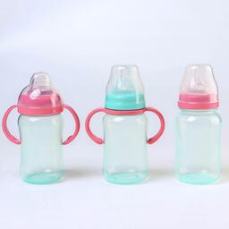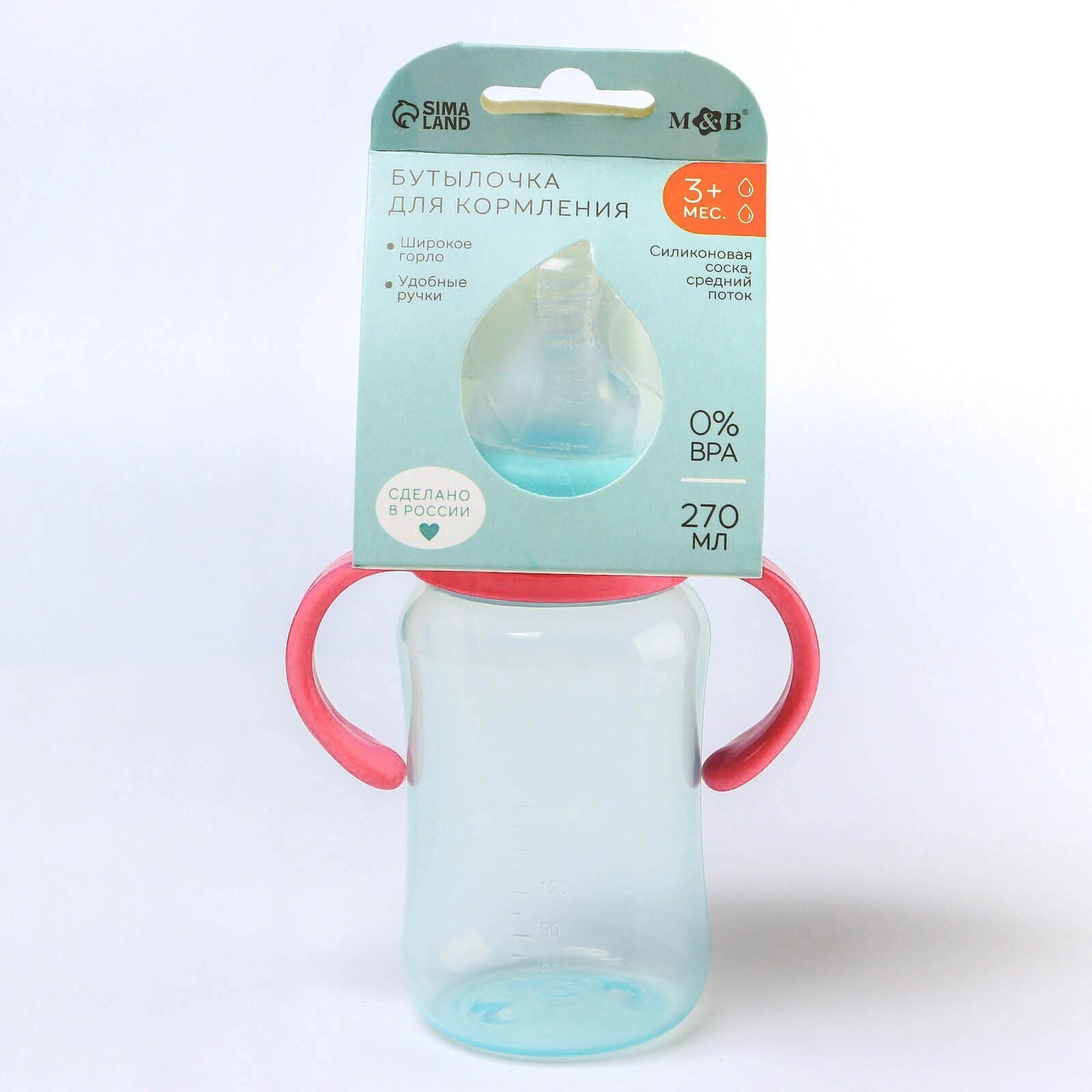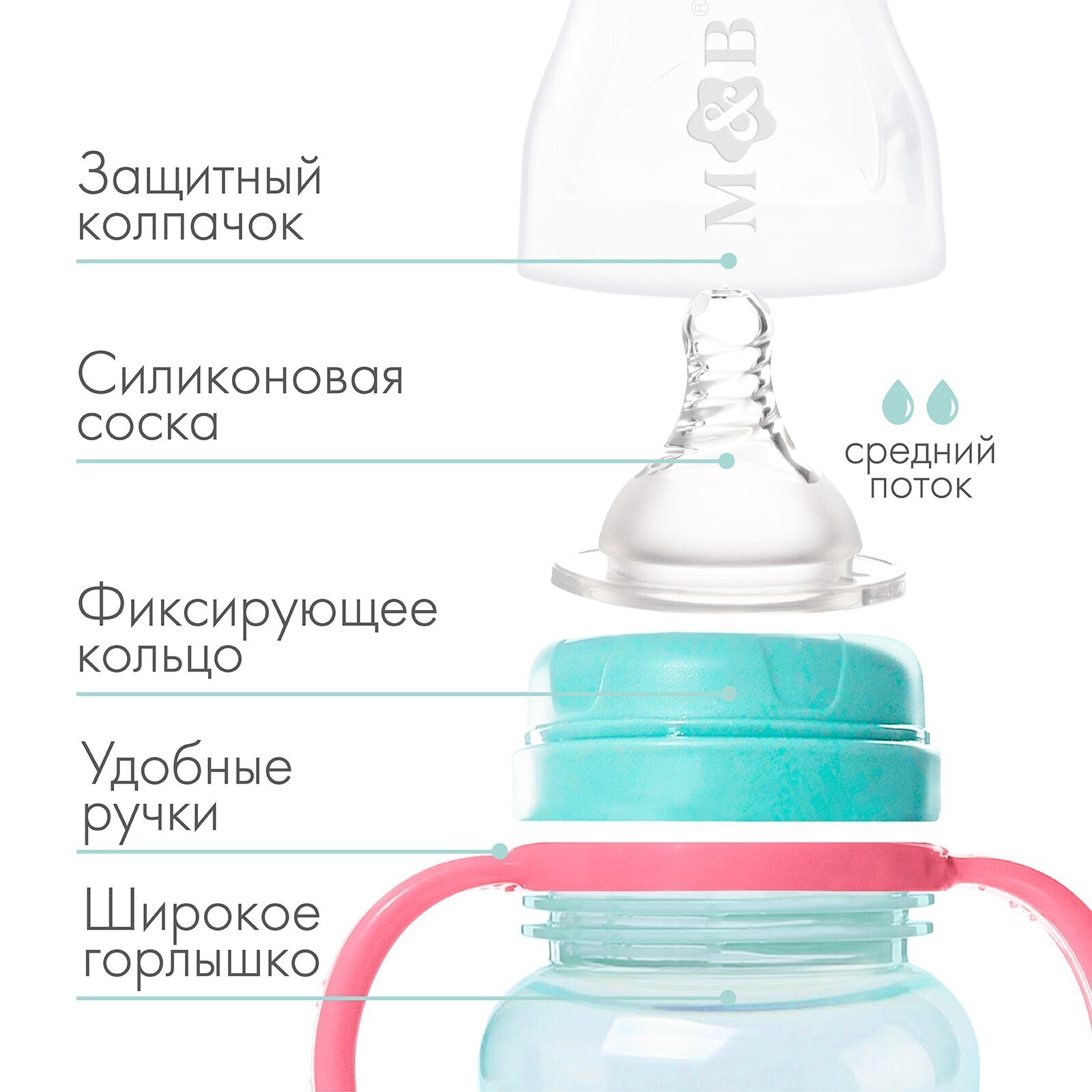 Бутылочка для кормления, широкое горло, 270 мл, с ручками, бирюзовый/розовый