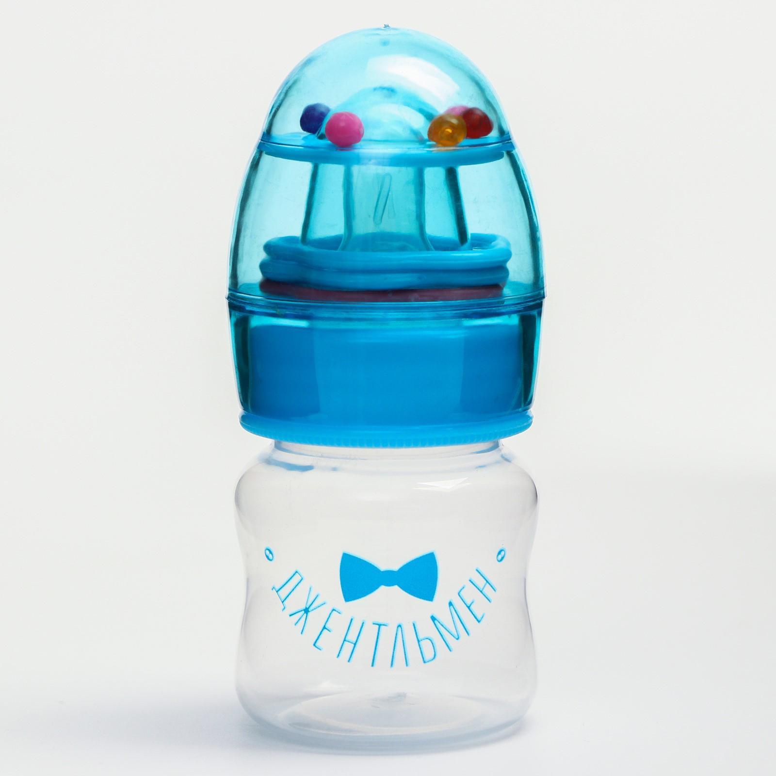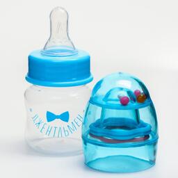 Бутылочка для кормления «Джентльмен» с погремушкой, 60 мл, от 0 мес., цвет голубой