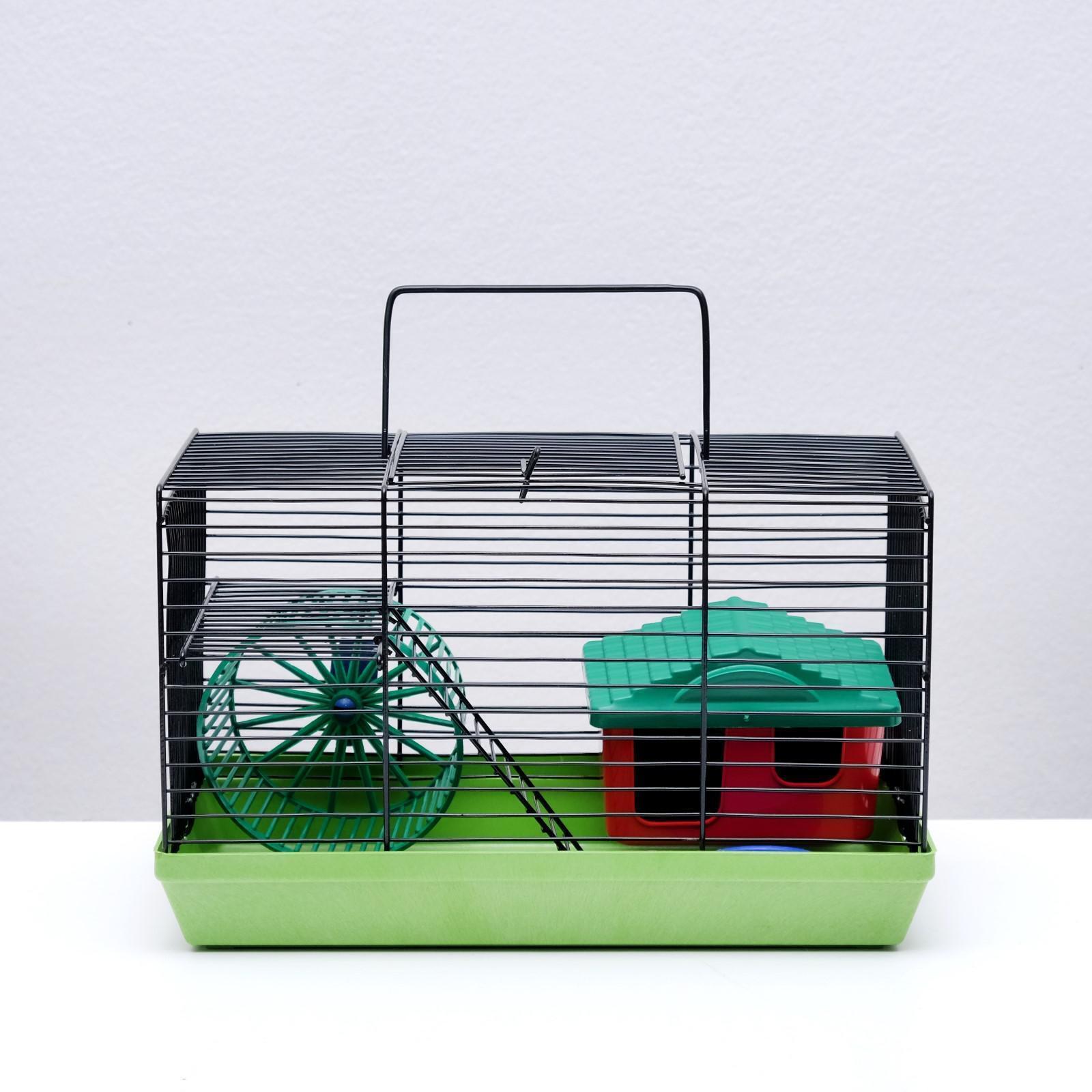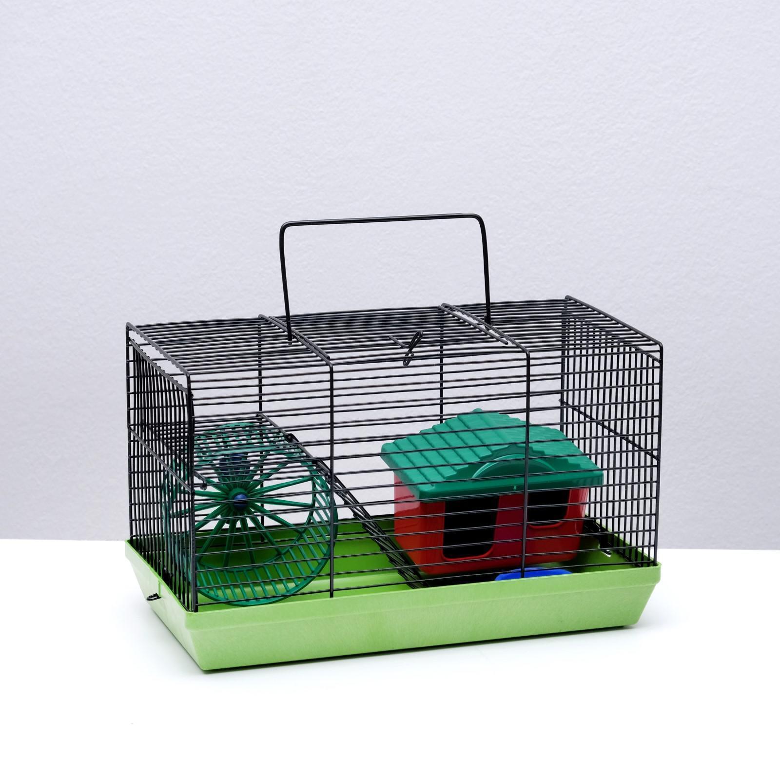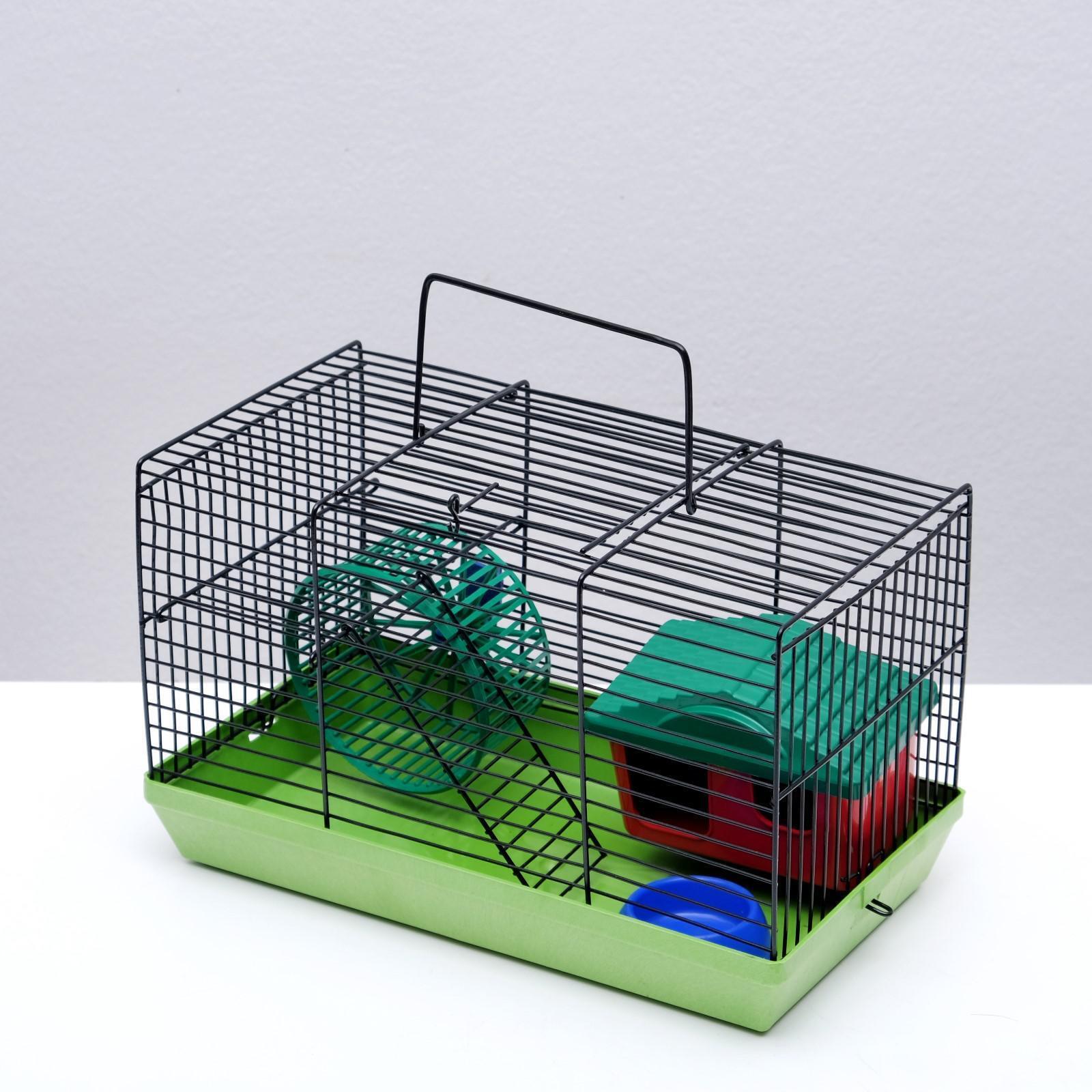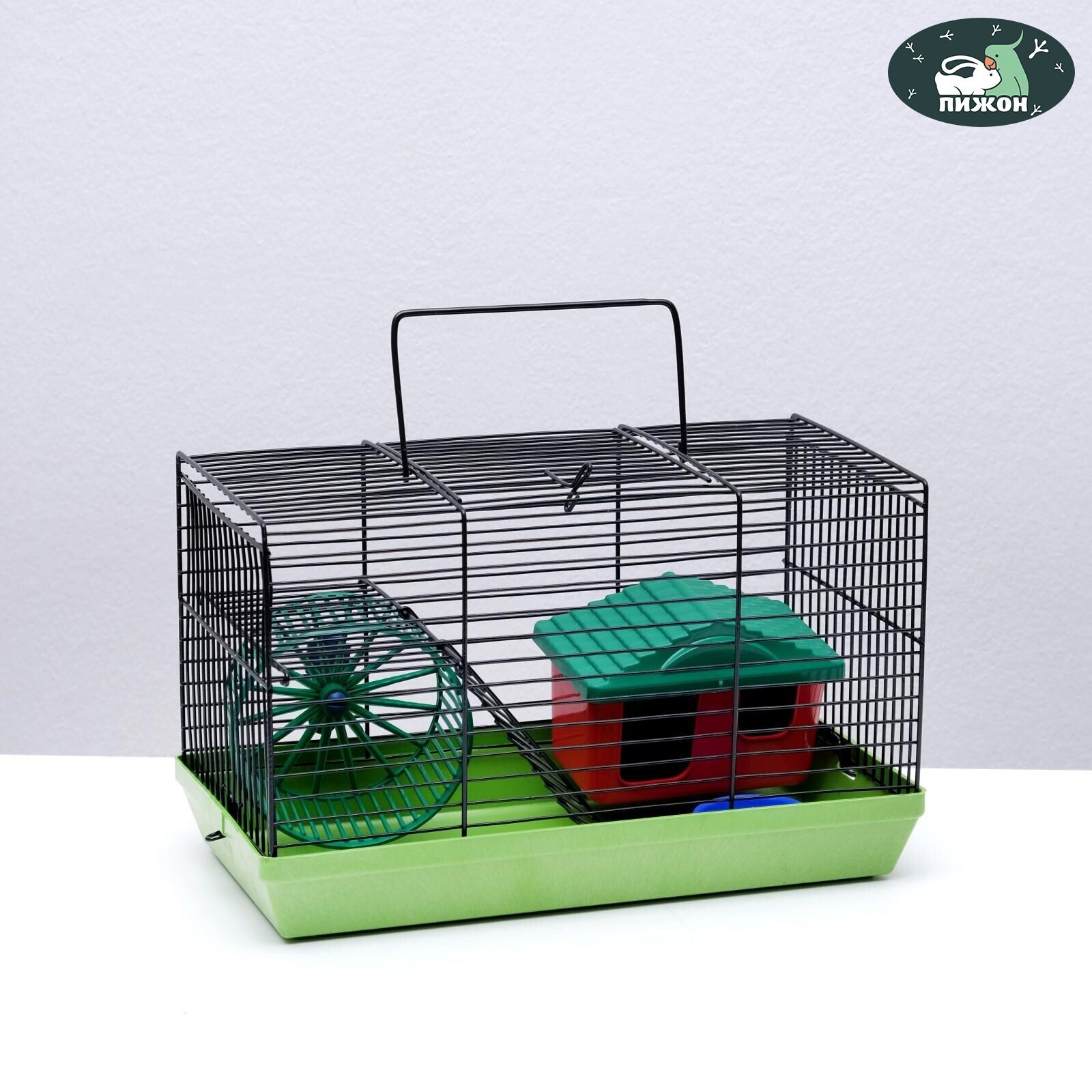 Клетка-мини для грызунов "Пижон" №2, укомплектованная, 27х15х16 см, зеленый микс