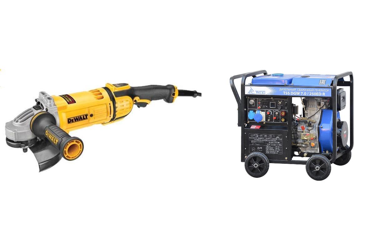 В состав набора входят: Генератор ТСС DGW 7.0/250ED-R инверторный дизельный сварочный tss, УШМ DeWALT DWE4579 2600Вт 6500об/мин 230мм