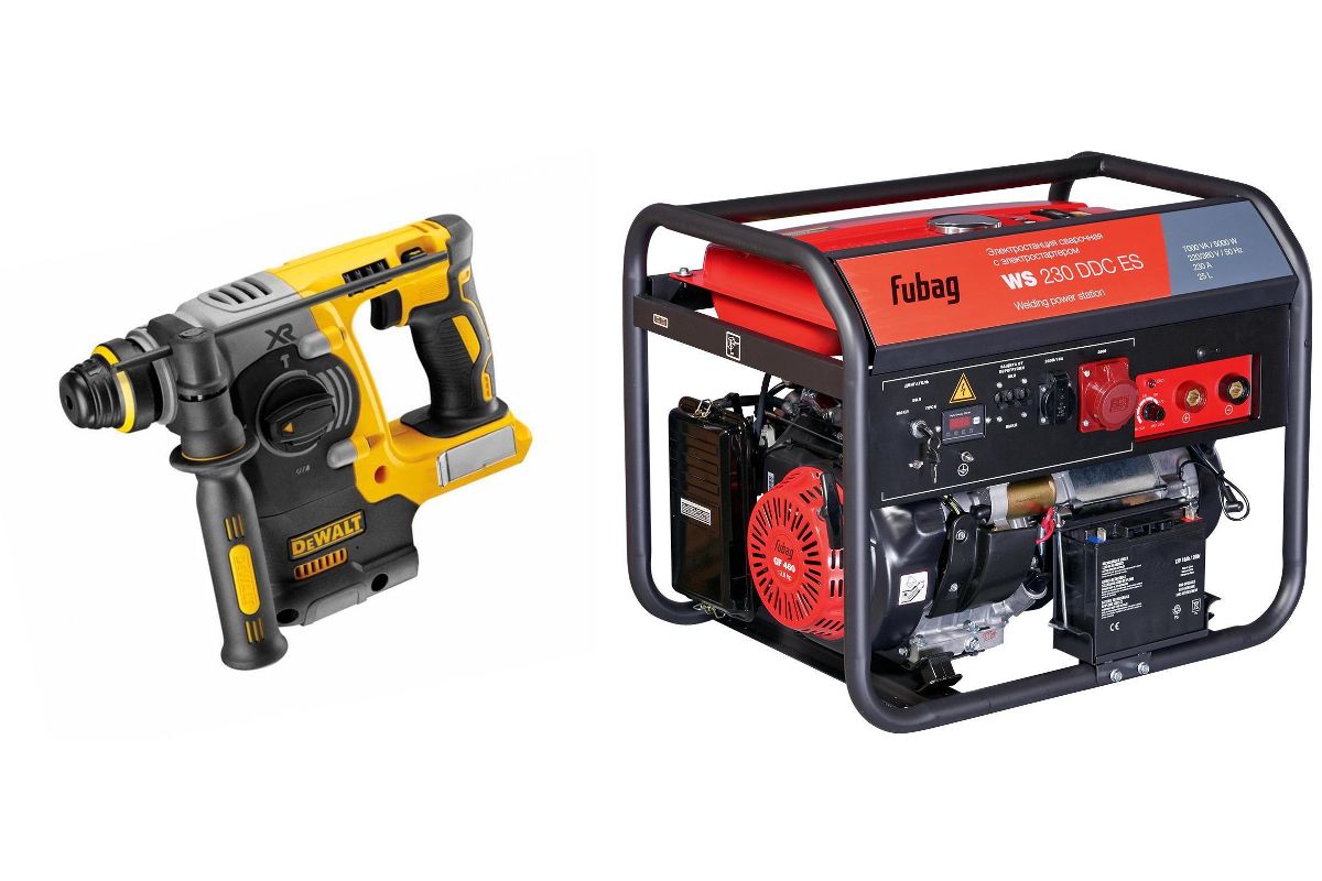 В состав набора входят: Электростанция сварочная FUBAG WS 230 DDC ES 6.9 кВа/5.6 кВт, 439 см3, бак 25л, время работы: 9 ч., Перфоратор DEWALT DCH273N-XJ SDS+ 18.0 В XR 2.1 Дж Ф24 мм БЕЗ АКК.и ЗУ 2.1 кг