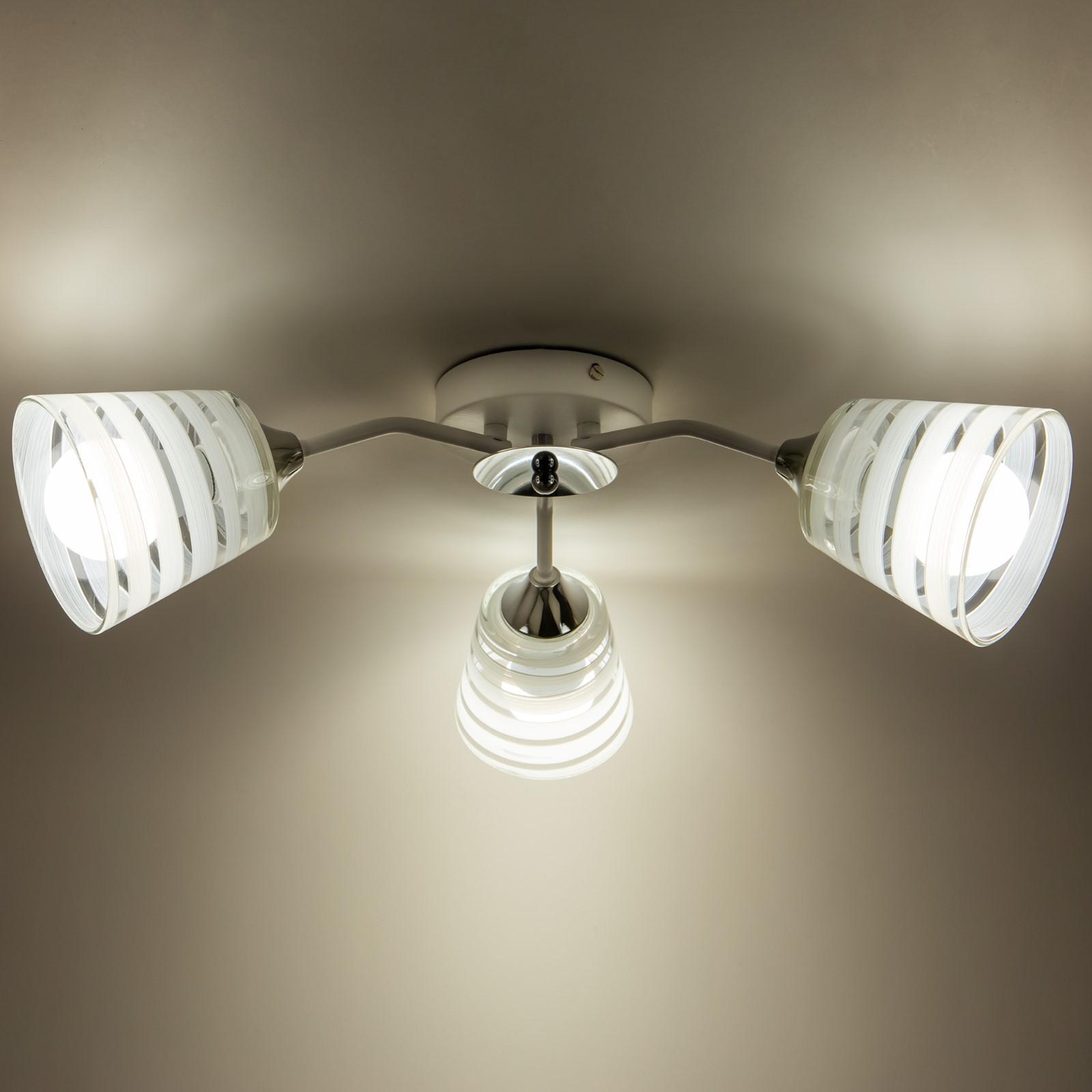 Люстра, 60Вт, E27, 56x56x17,5 см, цвет белый, хром