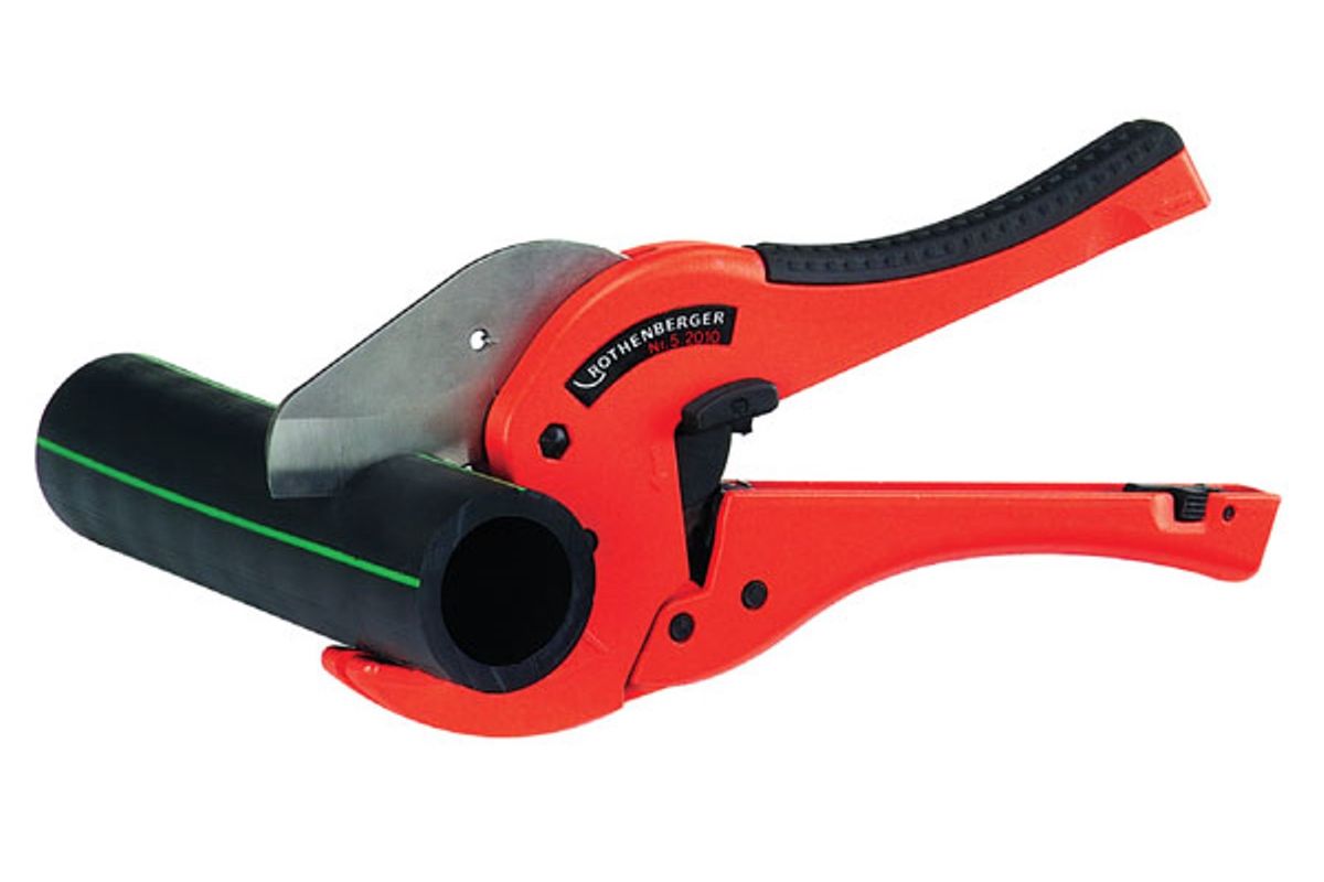 ROTHENBERGER ROCUT 50 ТС 52010r — ножницы для резки сантехнических труб из полипропилена и других видов пластика. Максимально допустимый диаметр — 50 миллиметров. Мощный механизм и острое лезвие позволяют резать трубу как можно более точно, не деформируя ее. Лезвия производства Solingen гарантируют чистый качественный рез и долгую службу.