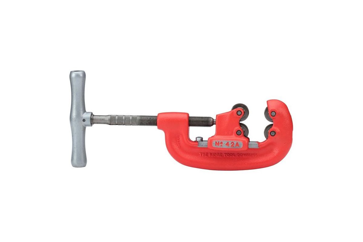 Труборез модели 42-А предназначается для резки стальных труб диаметром до 2'' в местах с ограниченным пространством, не позволяющим сделать полный оборот. Данная модель трубореза оснащена рукояткой малой длины для применения в местах с максимально возможным поворотом в 130°.