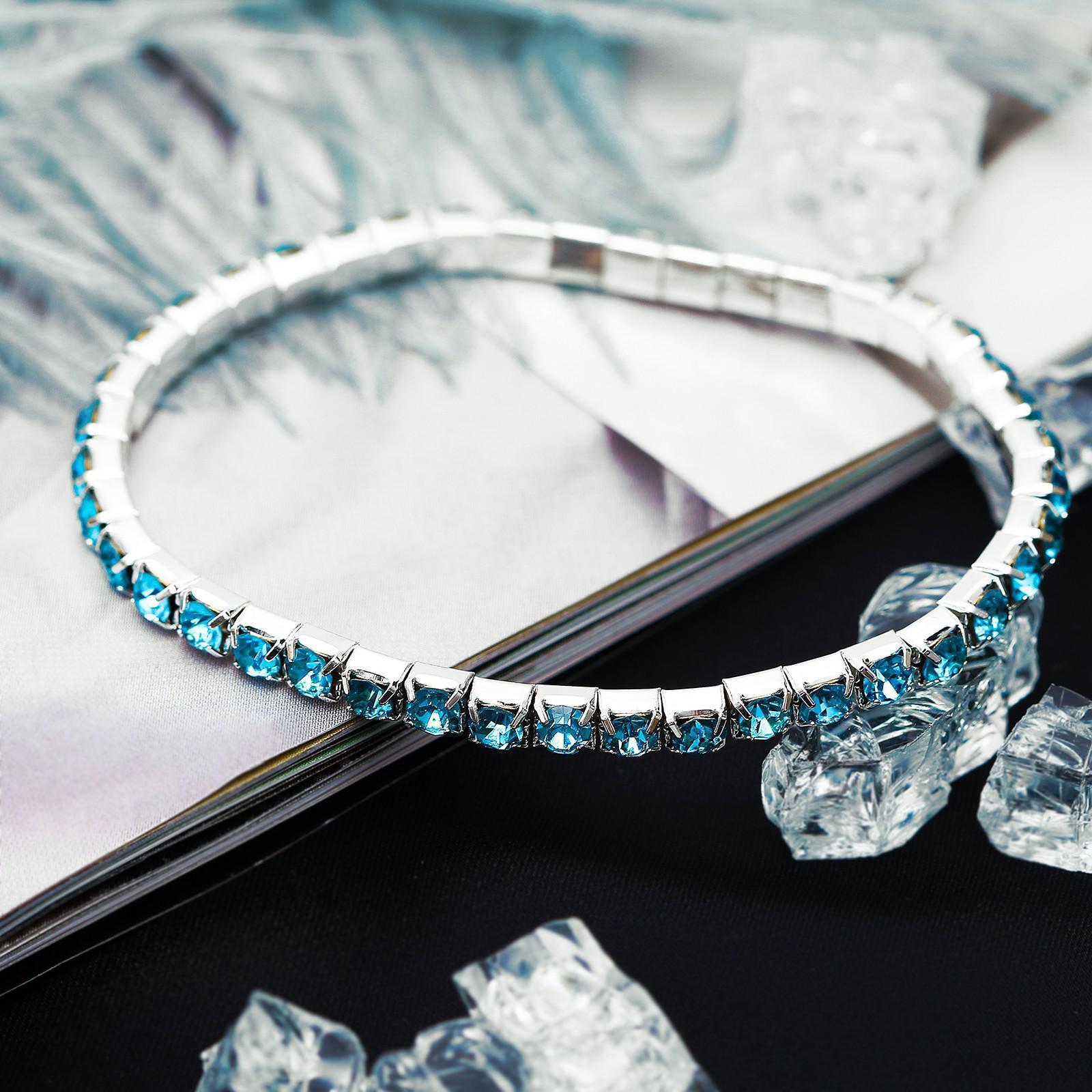 Браслет со стразами "Лёд" 1 ряд, цвет голубой, 4мм, d=7см