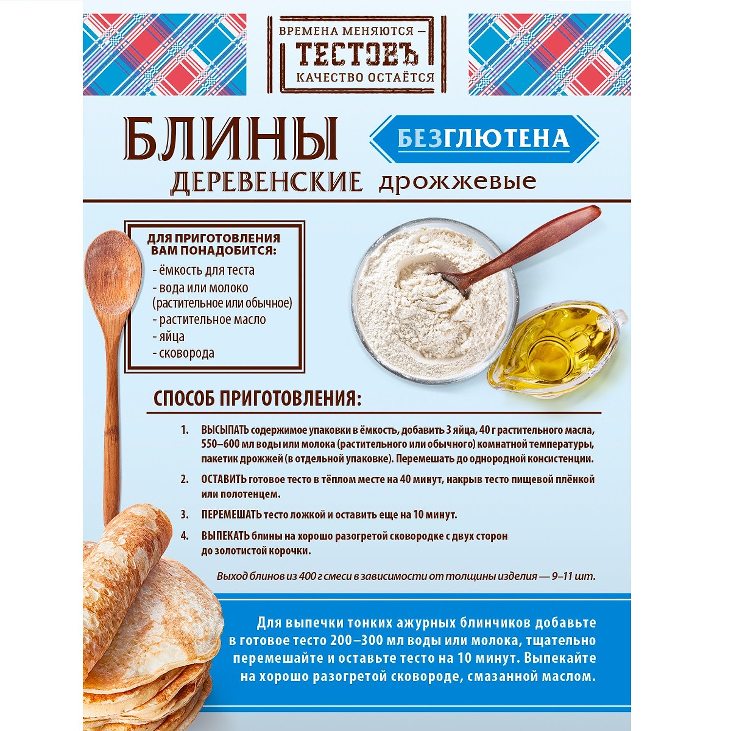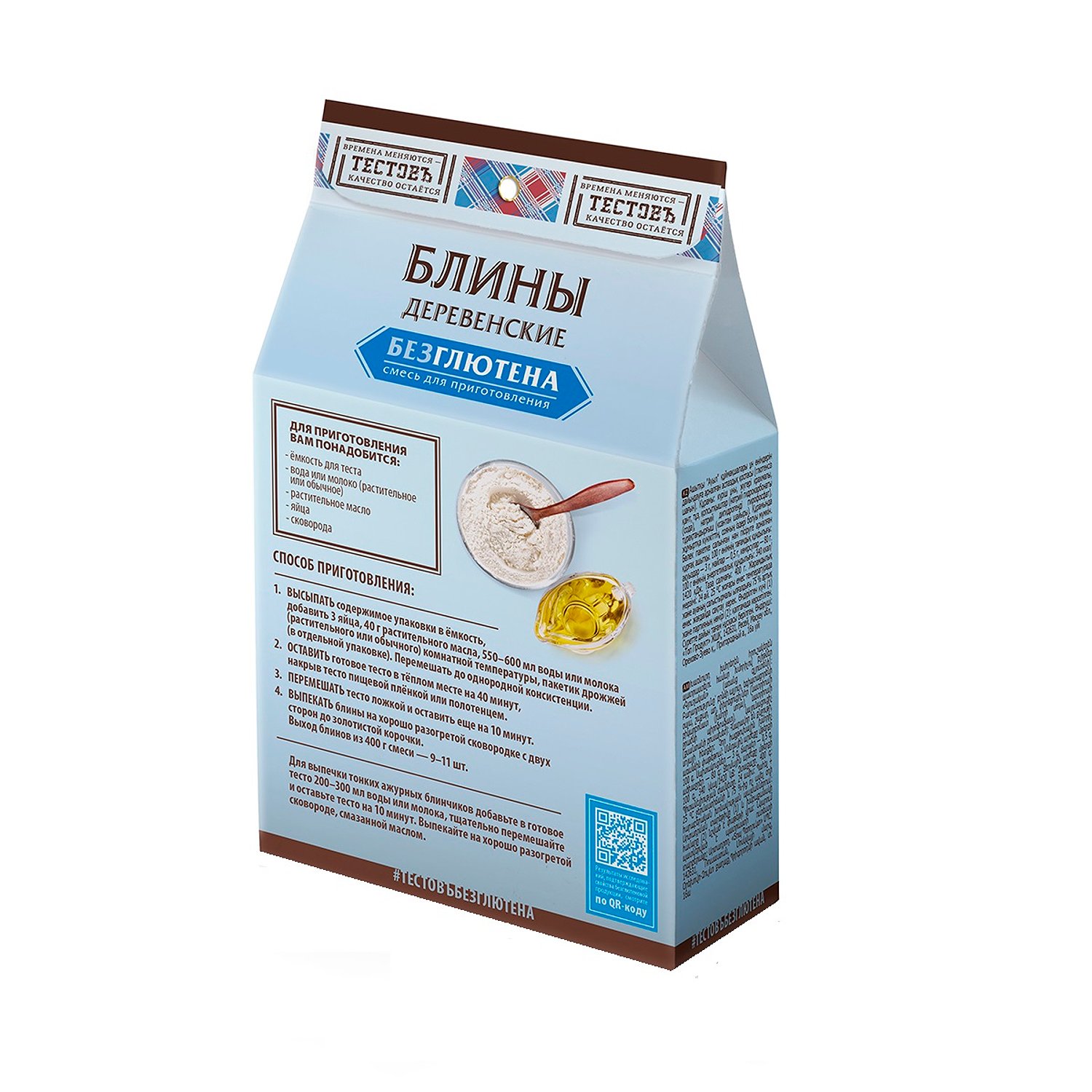 Смесь для выпечки ТЕСТОВЪ Блины деревенские дрожжевые без глютеновые 400 г 12814