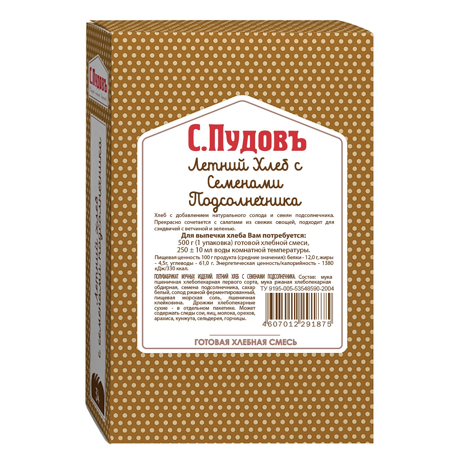 Летний хлеб С. Пудовъ С семенами подсолнечника 500 г 4607012291875