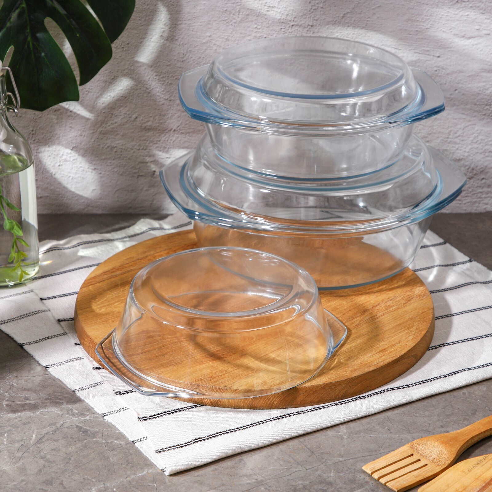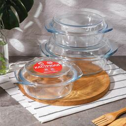 Набор кастрюль из жаропрочного стекла для запекания Доляна «Фуэго», 3 предмета: 1,5 л, 2 л, 3 л, с крышкой