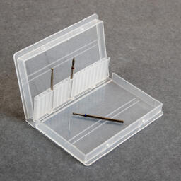Бокс изготовлен из пластика, вмещает в себя 20 фрез. Основание фрезы чётко помещается в разъём и надёжно фиксируется в нём. Органайзер поможет содержать рабочий инструмент в чистоте и порядке, и фрезы всегда будут под рукой.