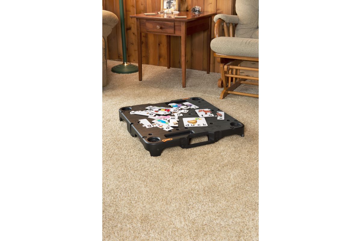 Стол складывается с помощью креплений «ласточкин хвост». С ним также можно объединит несколько столешниц, чтобы увеличить рабочее пространство.