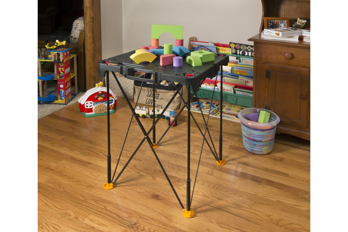 WORX WX066 – универсальный рабочий стол. Будет полезен в мастерской, на выездных мастер-классах, во время ремонта, на пикнике и т.д. Быстро раскладывается. Инструменты для установки не нужны.