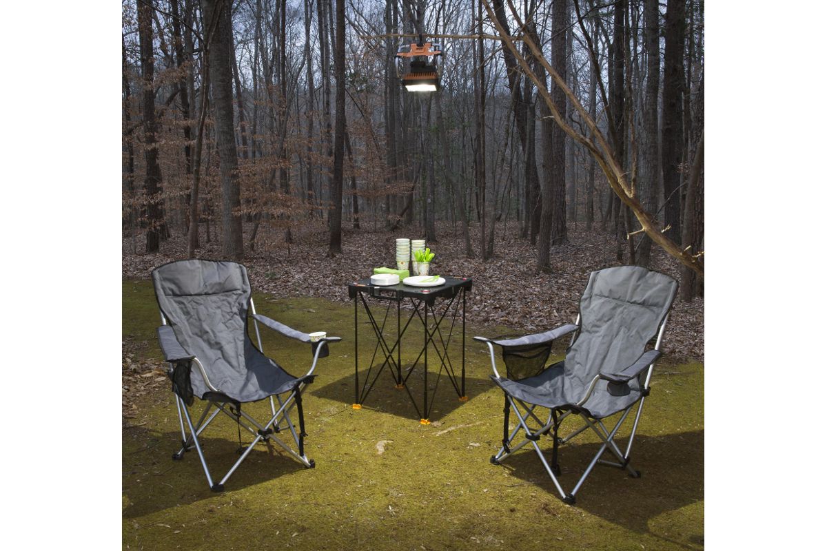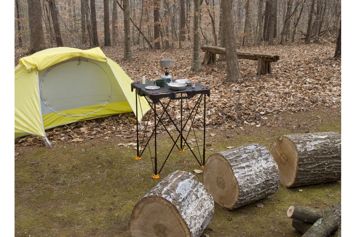 Размер столешницы – 60х60 см. Для переноски и хранения она складывается пополам.