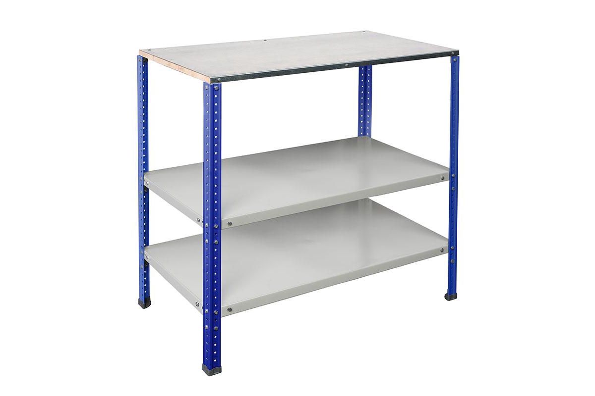 Размеры внешние, мм (ВхШхГ): 920x1000x500. Вес, кг: 22,5, Количество полок: 2. Столешница выполнена из мебельного щита (сосна 18 мм), на верхней части щита установлена накладка из оцинкованного листа металла толщиной 1.2 мм, распределенная нагрузка 300 кг. Опоры изготовлены из стойки с профилем сечения 40х40 мм, толщина стали стоек 1,5 мм, шаг перфорации 50 мм. На опорах установлены пластиковые подпятники. Комлект верстака оснащен двумя полками с нагрузкой до 100 кг. Верстак возможно дополнить ящиком (нагрузка 30 кг), экраном и комплектом освещения.