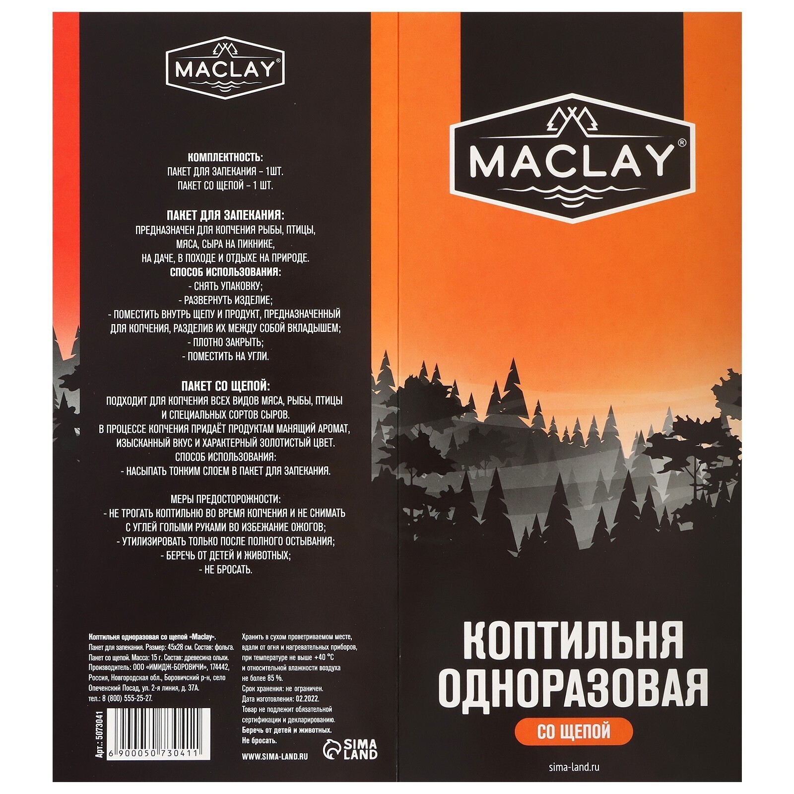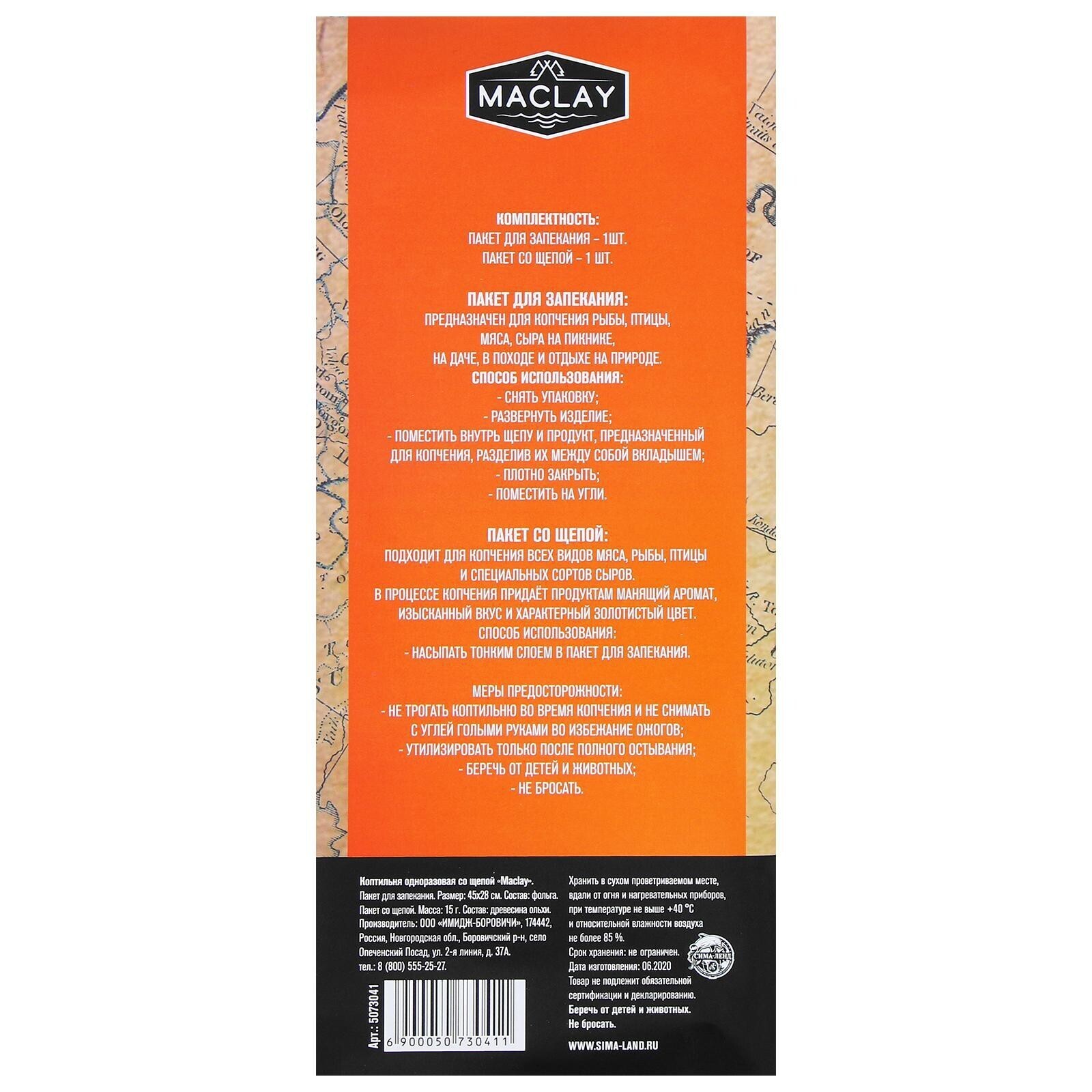 Коптильня одноразовая со щепой №1 Maclay