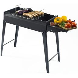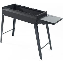 Современный, надежный, со складывающимися ножками мангал из толстой стали. Можно использовать как уголь, так и дрова.