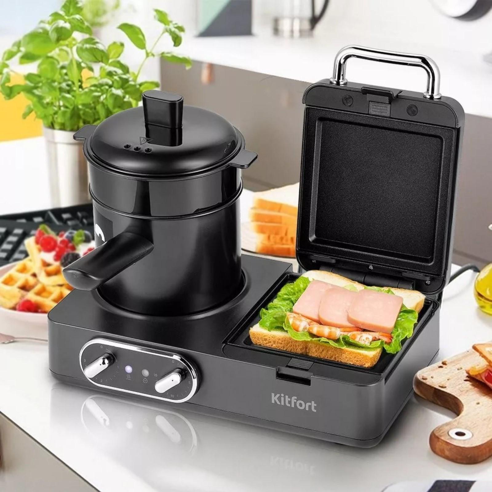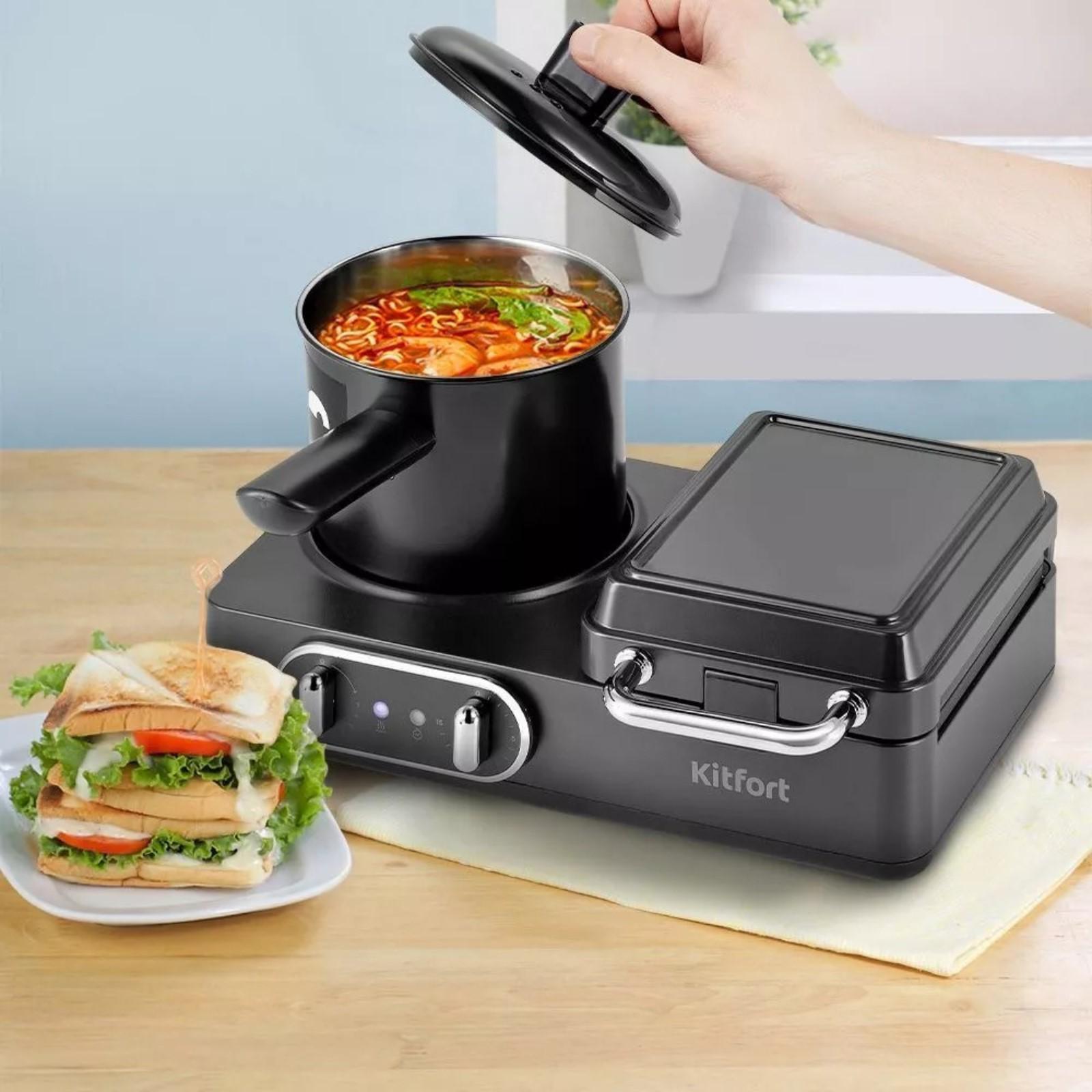 Плитка-гриль 4 в 1 Kitfort КТ-2076, 1200 Вт, 1.2 л кастрюля, цвет чёрный