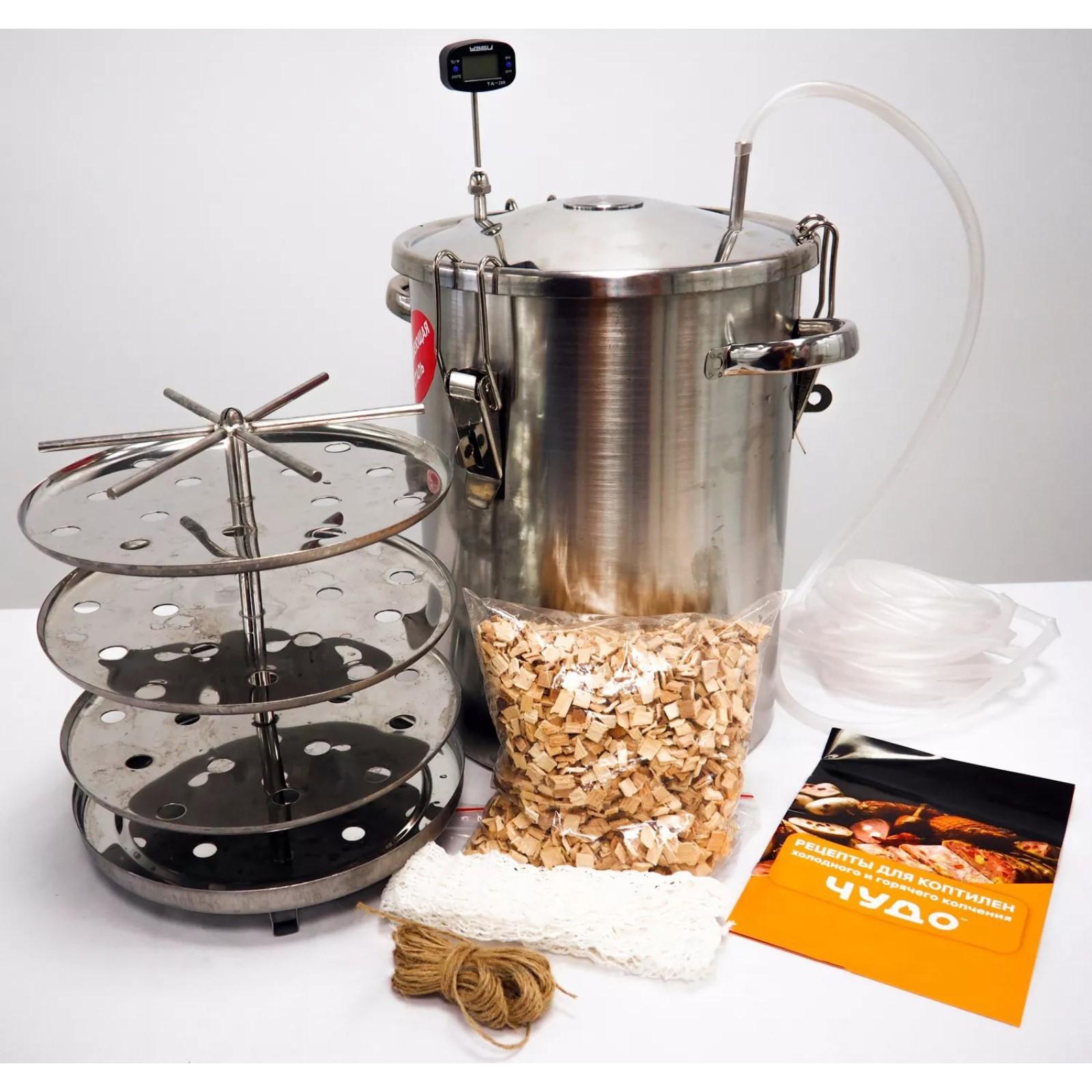 Коптильня бытовая круглая «УЗБИ» «Аромат» КНГ-14, 14 л, 24х24х30 см, двухъярусная, горячего копчения