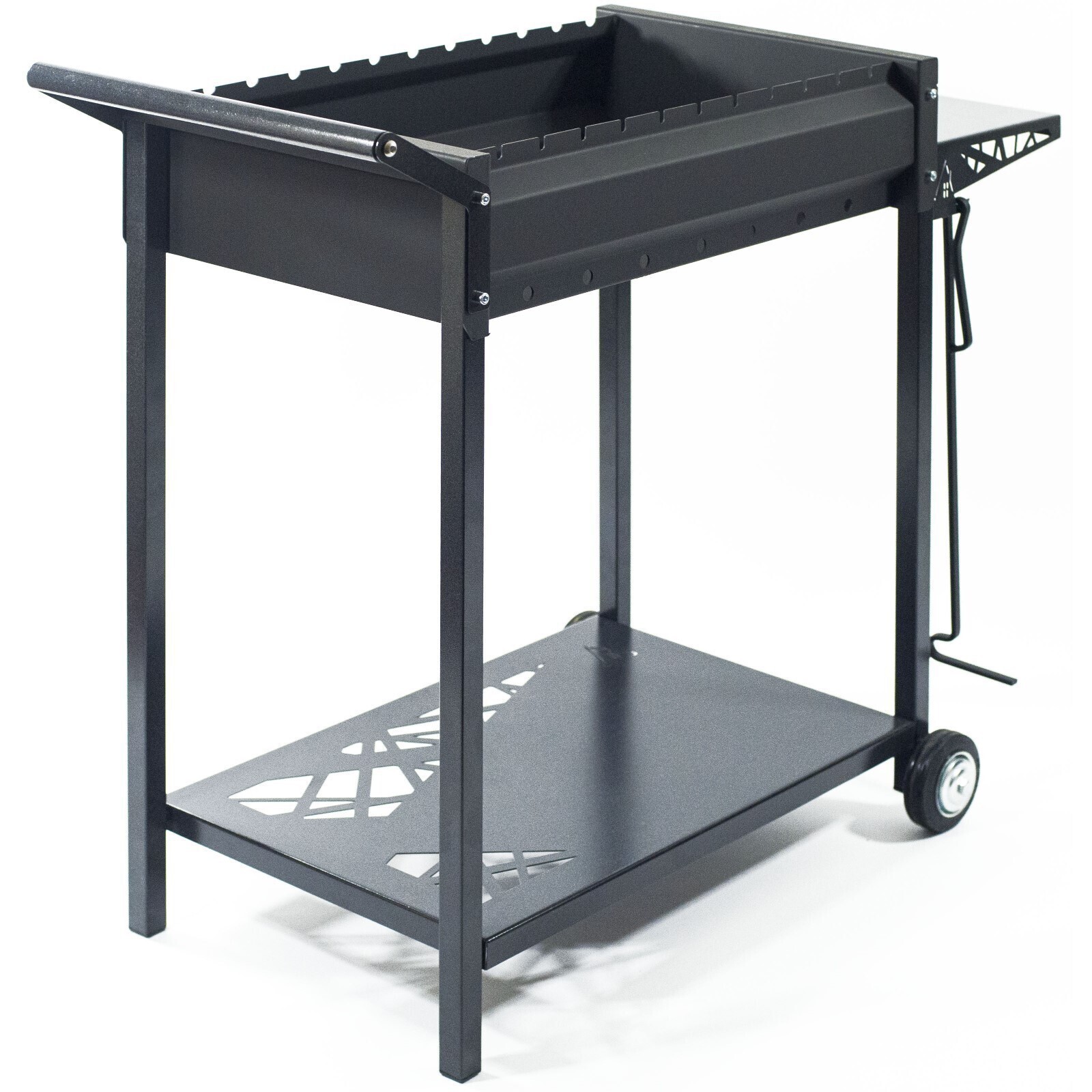Современный, надежный, со складывающимися ножками мангал из толстой стали. Можно использовать как уголь, так и дрова.