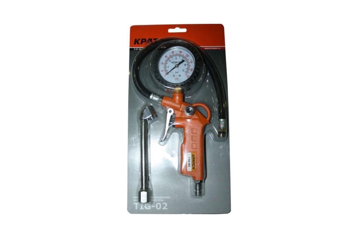 Пистолет для накачки шин КРАТОН TIG-02 с манометром Технические характеристики: Максимальное давление- 10 кгс/кв.см Размер входного штуцера 1/4'' Масса-0,5кг