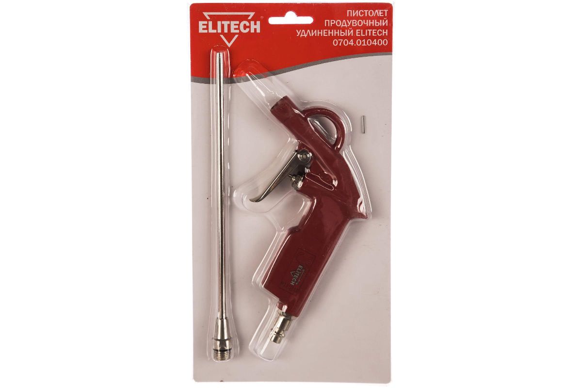 Пистолет продувочный ELITECH 0704.010400 пневмо удлиненный 100-200л/мин 2-6бар фсопла-3.8мм 0.2кг