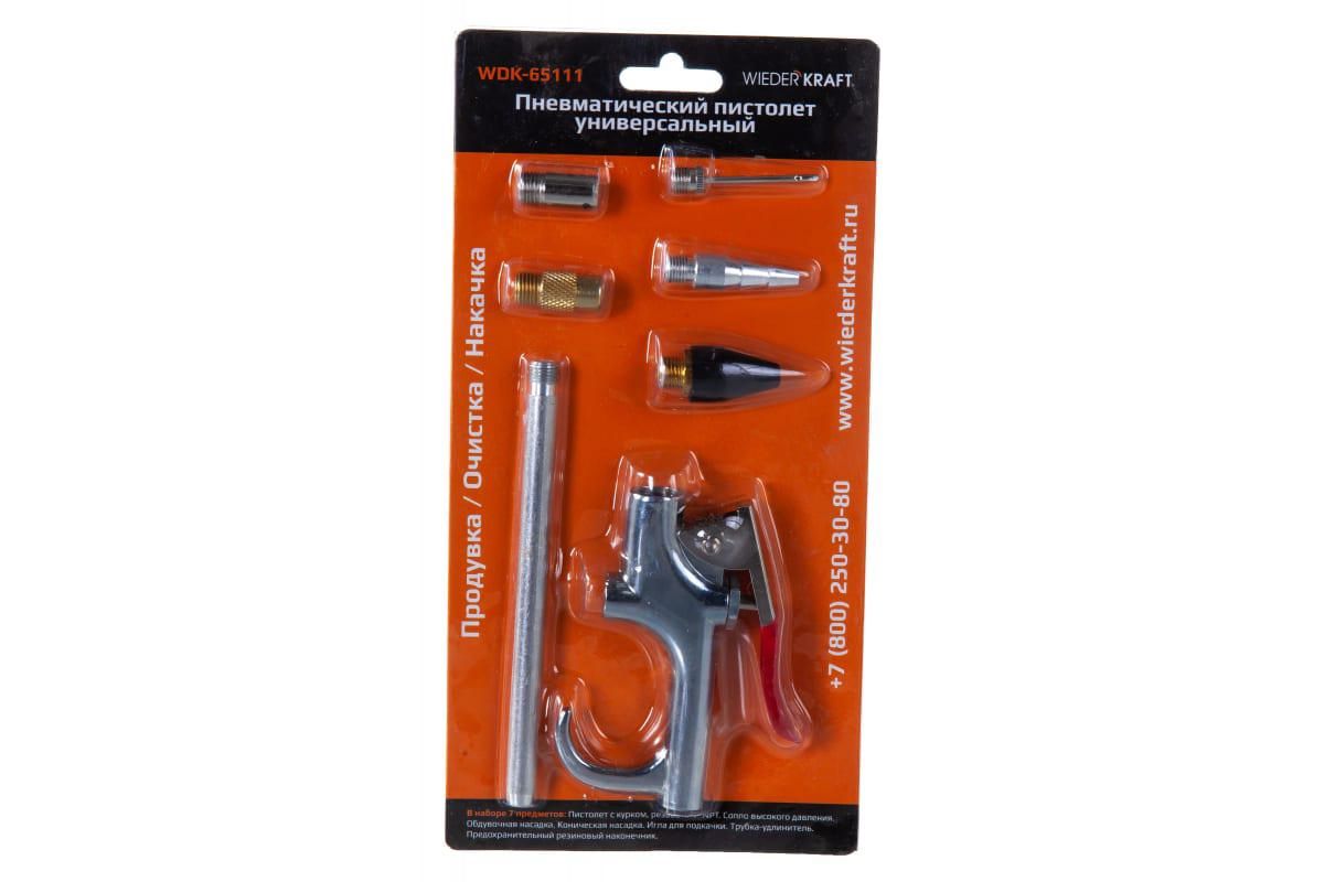 Пневматический обдувочный пистолет WIEDERKRAFT WDK-65111 с набором аксессуаров