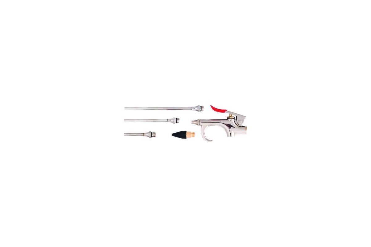 Пистолет продувочный предназначен для продувки сжатым воздухом малых отверстий и больших поверхностей. В комплекте имеется 4 различных редукционных насадок.