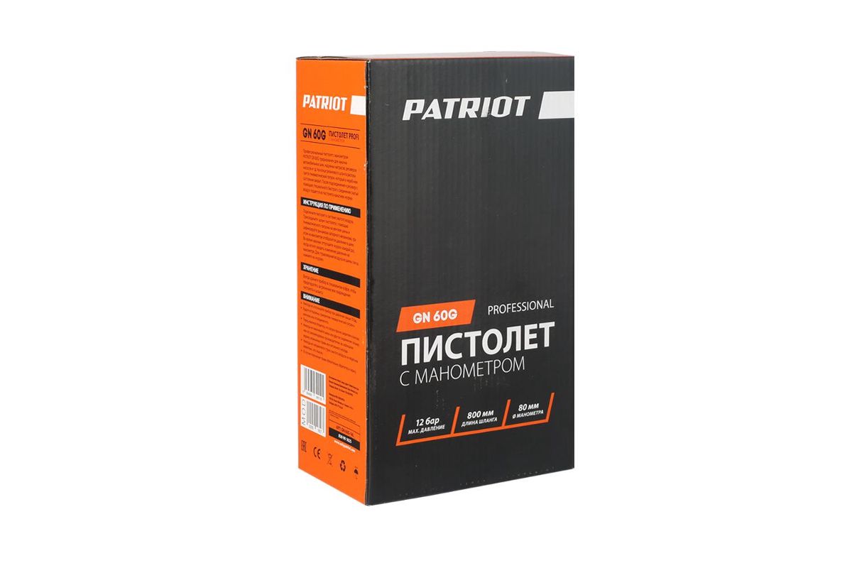 Пистолет для накачки шин PATRIOT GN 60G 12бар шланг360мм манометр63мм быстросъем