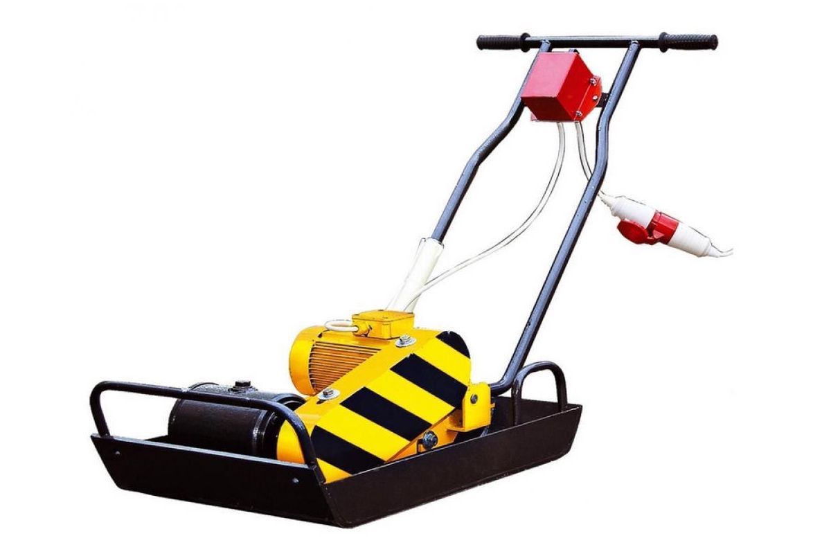 Применяется при дорожных и строительных работах, чтобы сделать поверхность достаточно плотной. Агрегат работает от сети с напряжением 380 В. Для безопасности оператора движущиеся механизмы виброплиты закрыты металлическим кожухом.