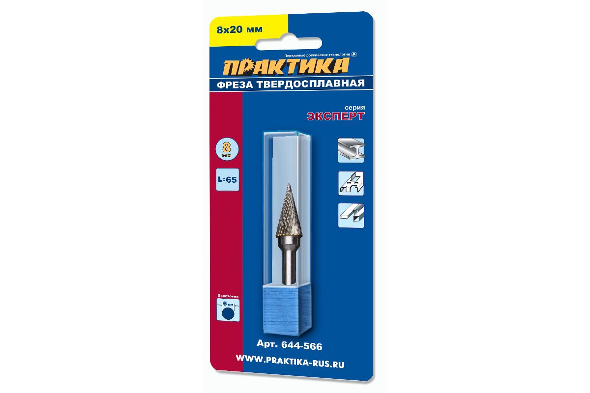 Фреза по металлу твердосплавная ПРАКТИКА 644-566 коническая, 8х20мм, хв.6мм, Эксперт