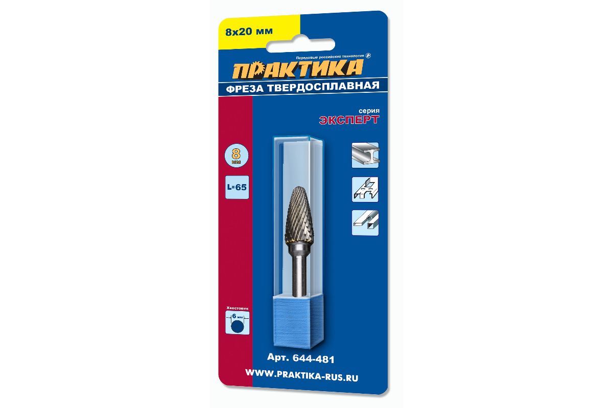 Фреза по металлу твердосплавная ПРАКТИКА 644-481 параболическая, 8х20мм, хв.6мм, Эксперт