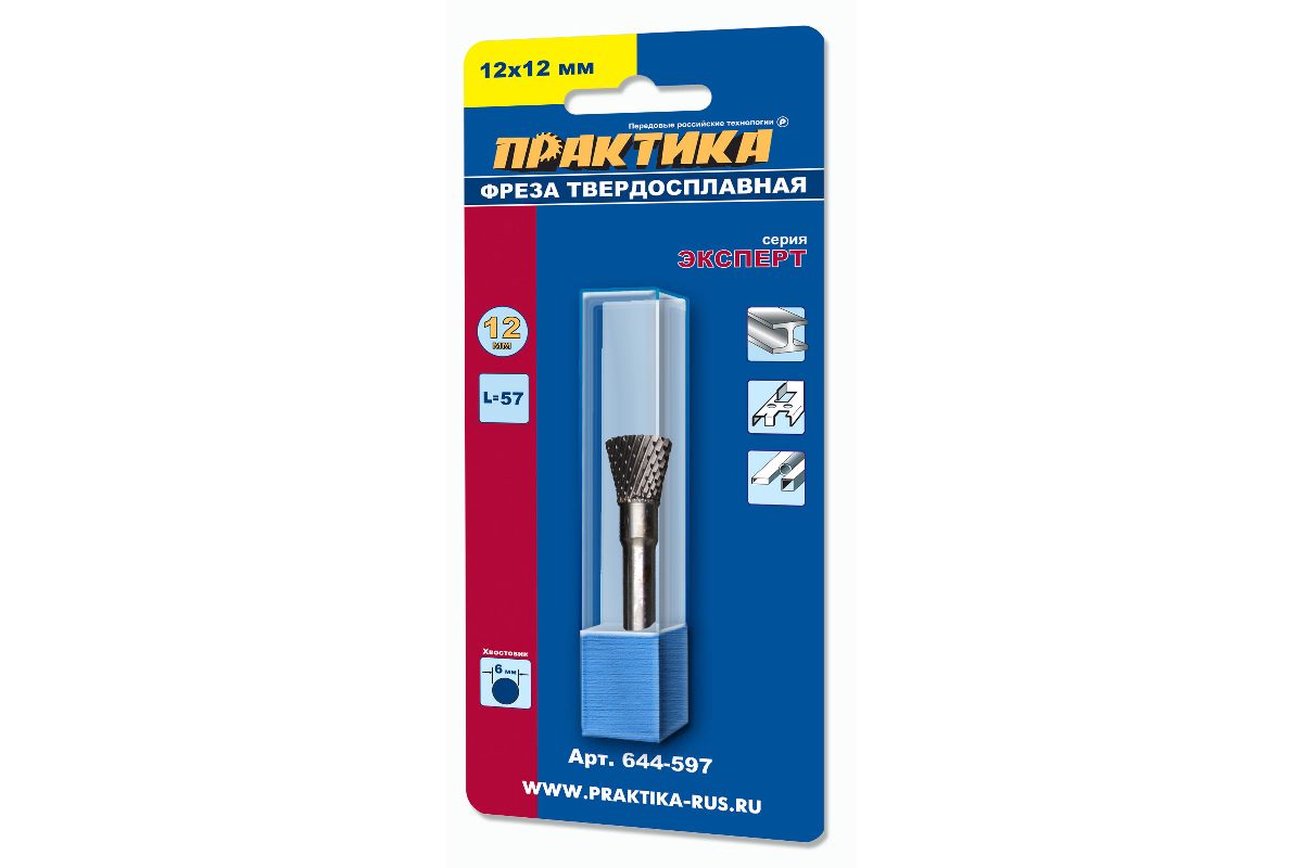 Фреза по металлу твердосплавная ПРАКТИКА 644-597 ласточкин хвост, 12х12мм, хв.6мм, Эксперт
