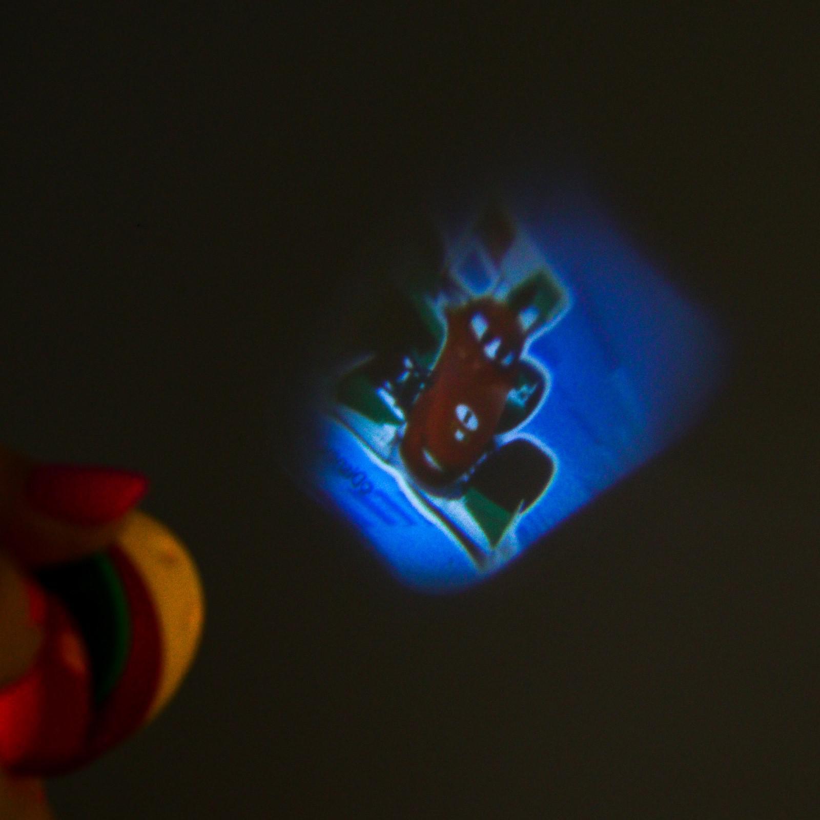 Проектор можно использовать как фонарик: для этого достаточно посветить устройством на пол, стену или потолок.