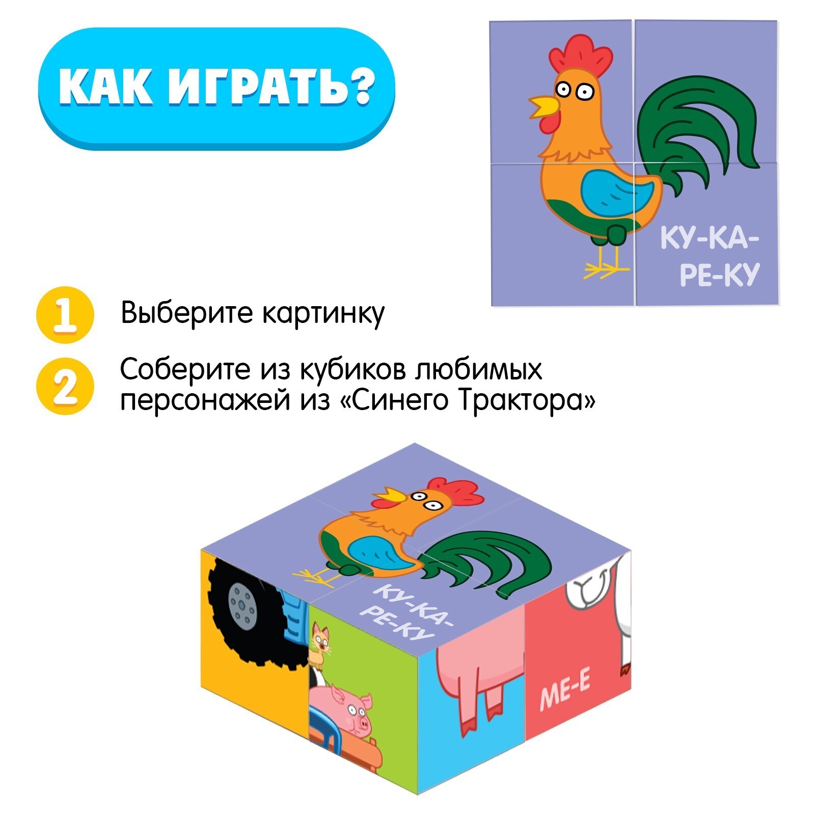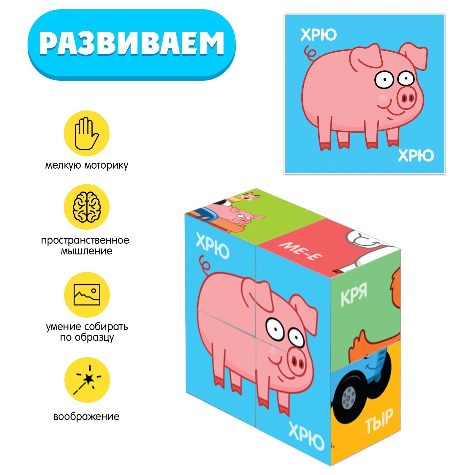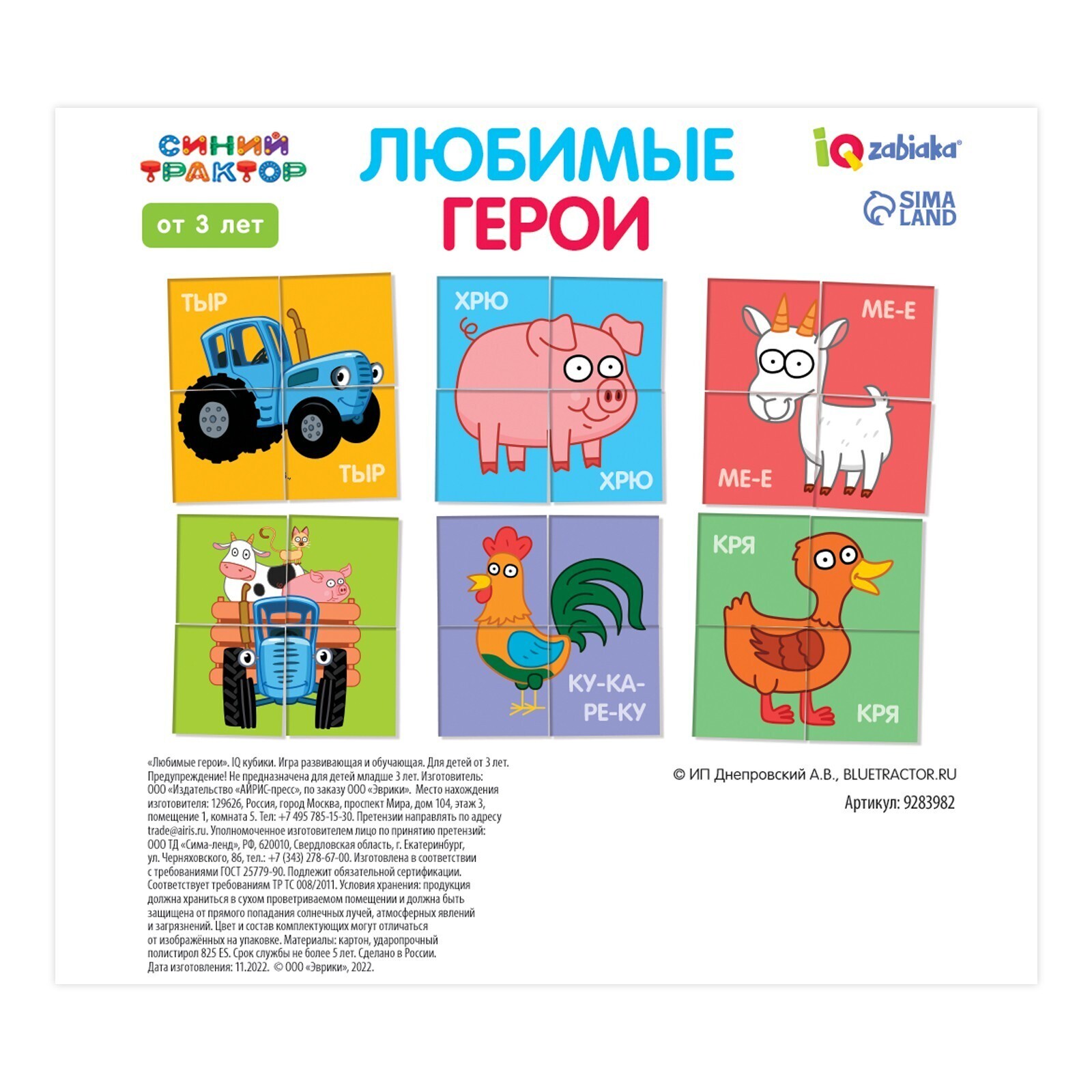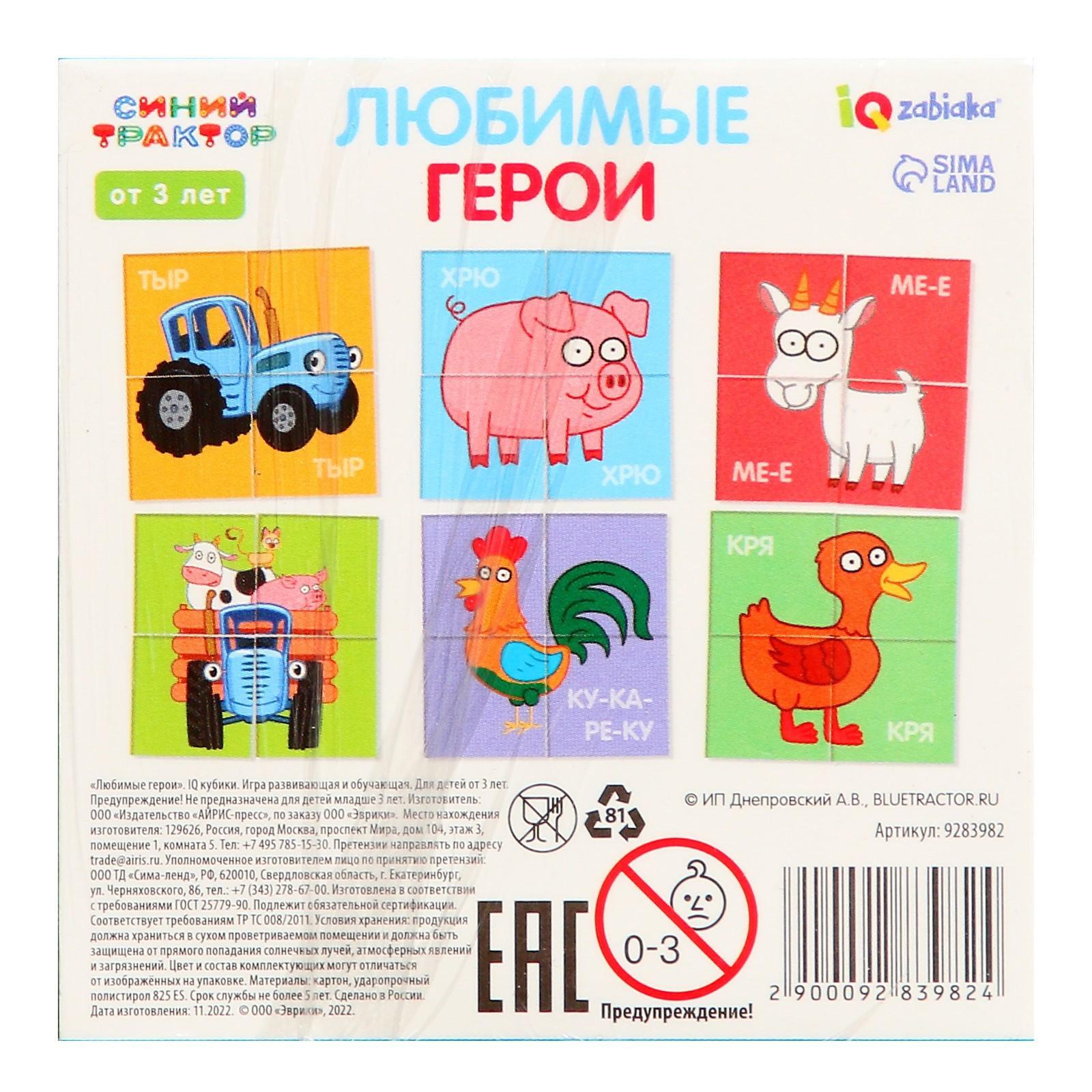 IQ кубики «Синий трактор. Животные», 4 шт.